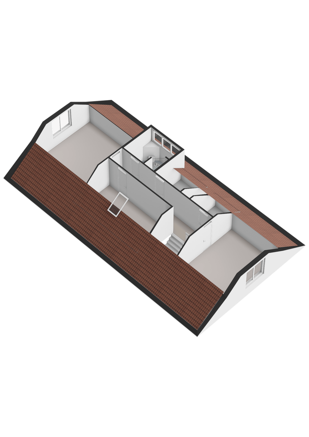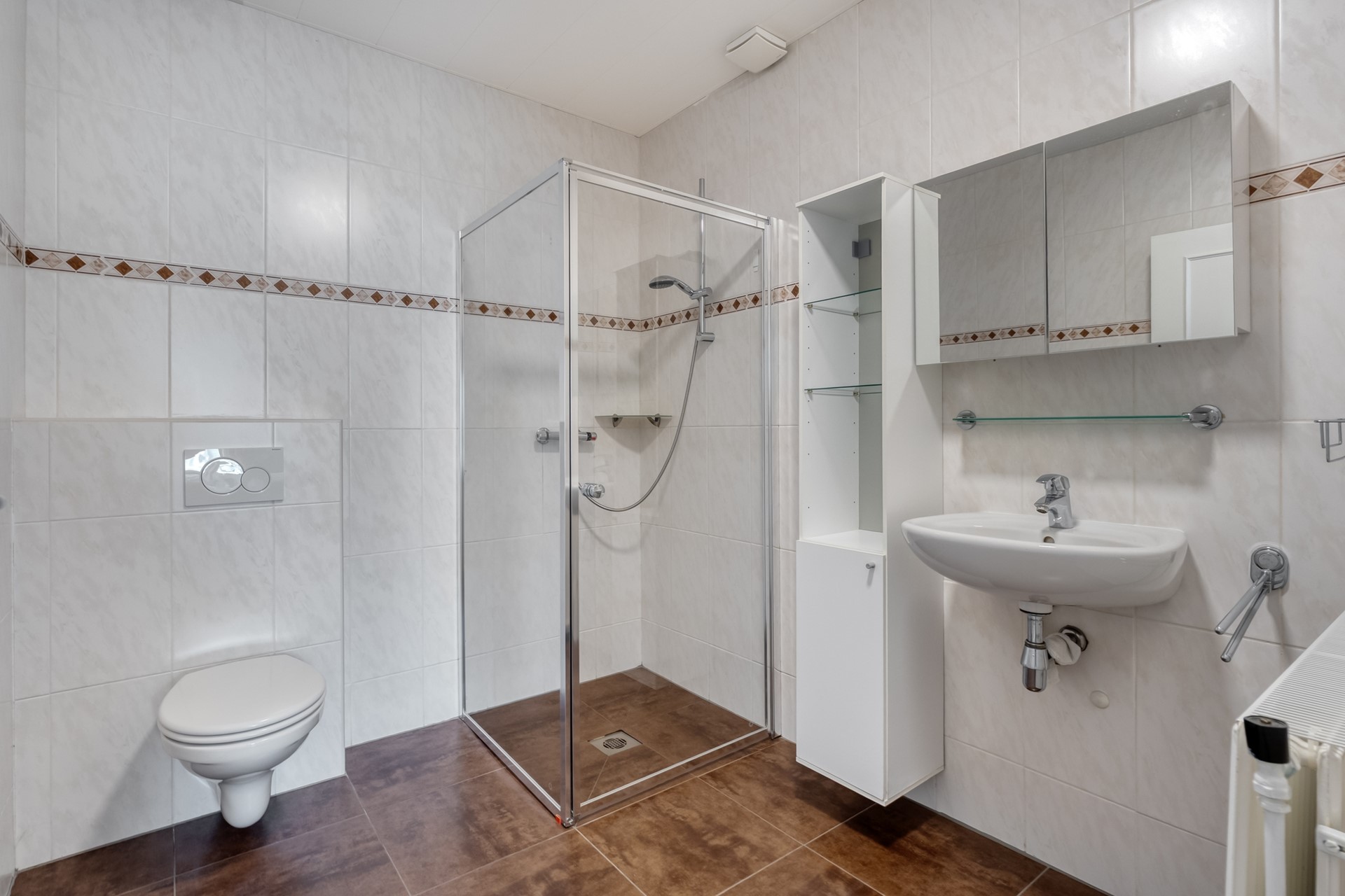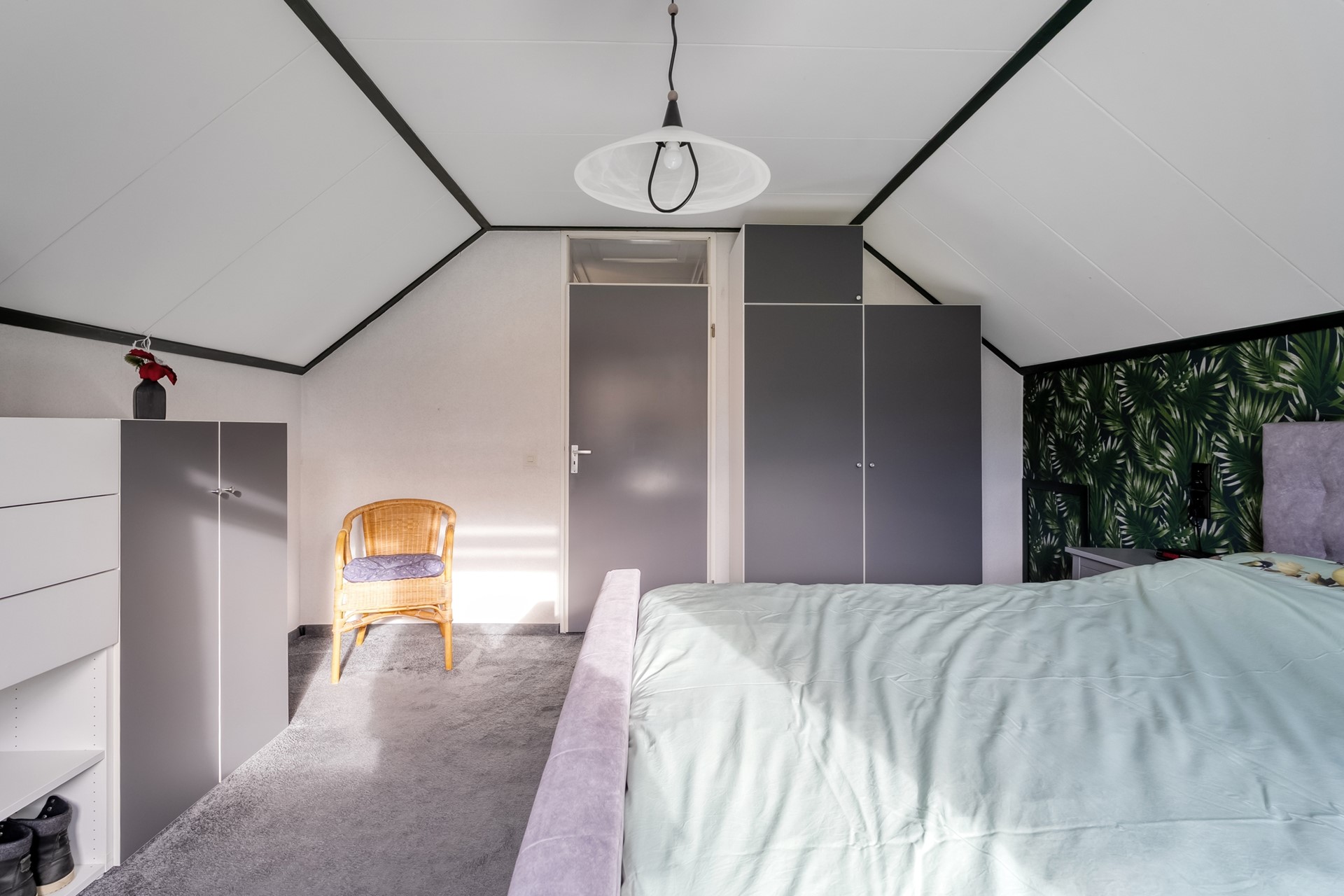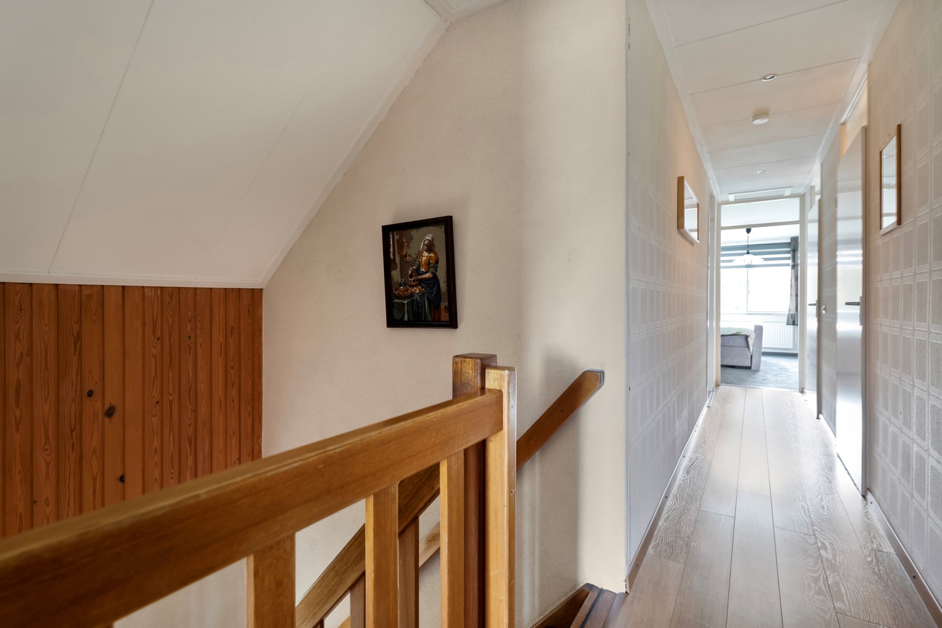 Op de verdieping bevinden zich een overloop met drie slaapkamers, bergruimte, stookruimte en badkamer die vergroot is dmv een dakkapel. De badkamer kent een wastafel, douche en toilet.