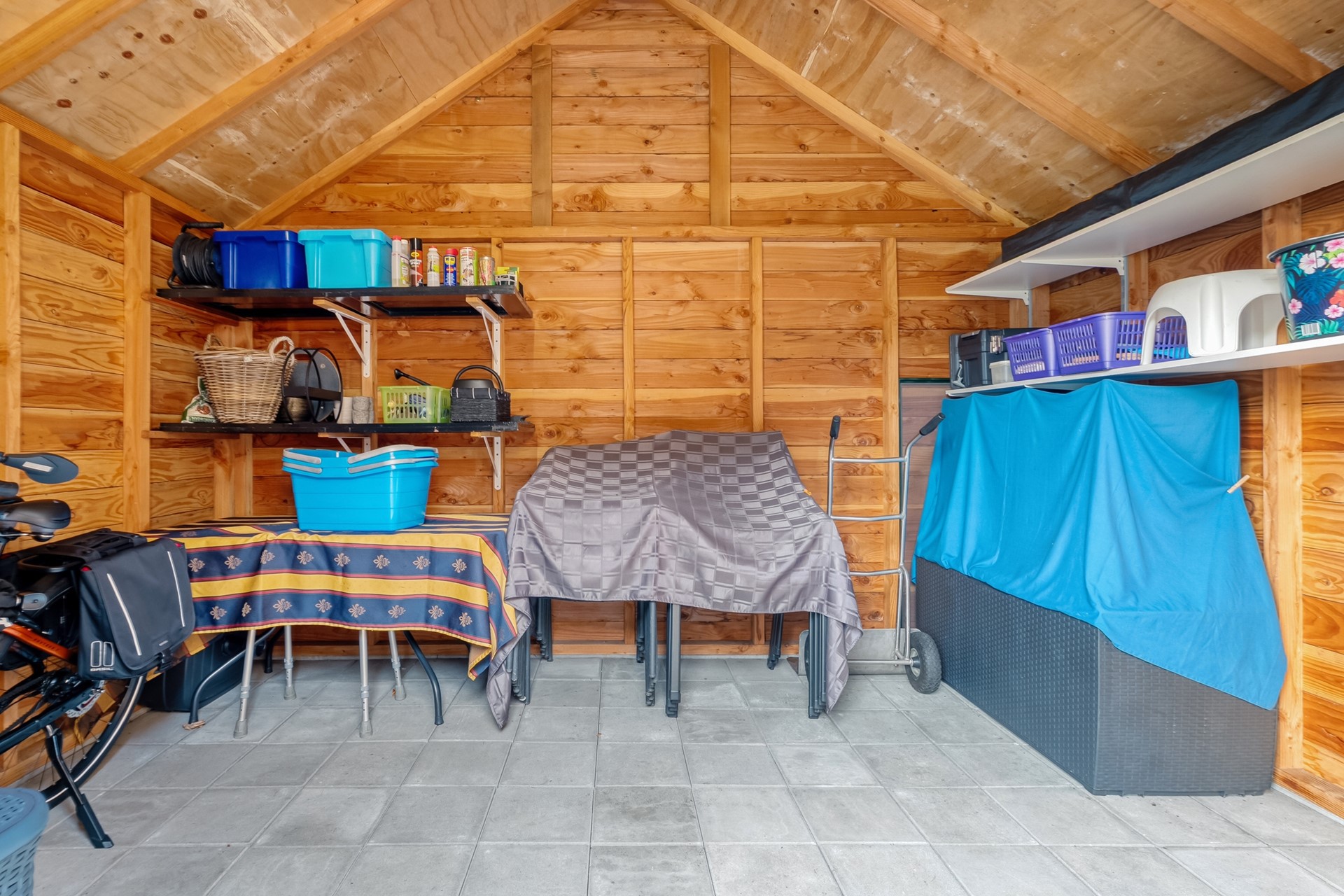 Op het perceel bevinden zich een lange oprit met meerdere parkeermogelijkheden alsmede een houten tuinhuis.
