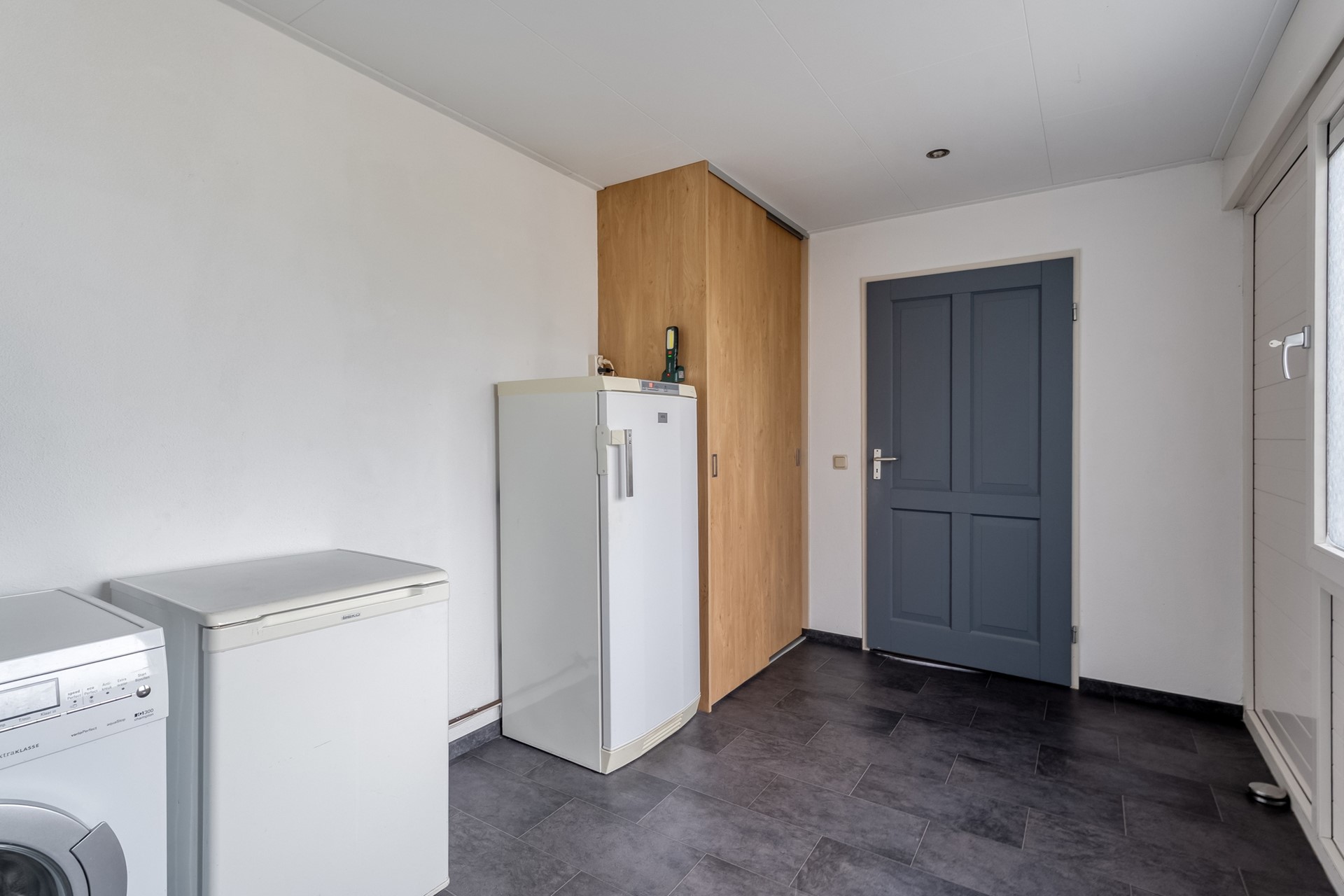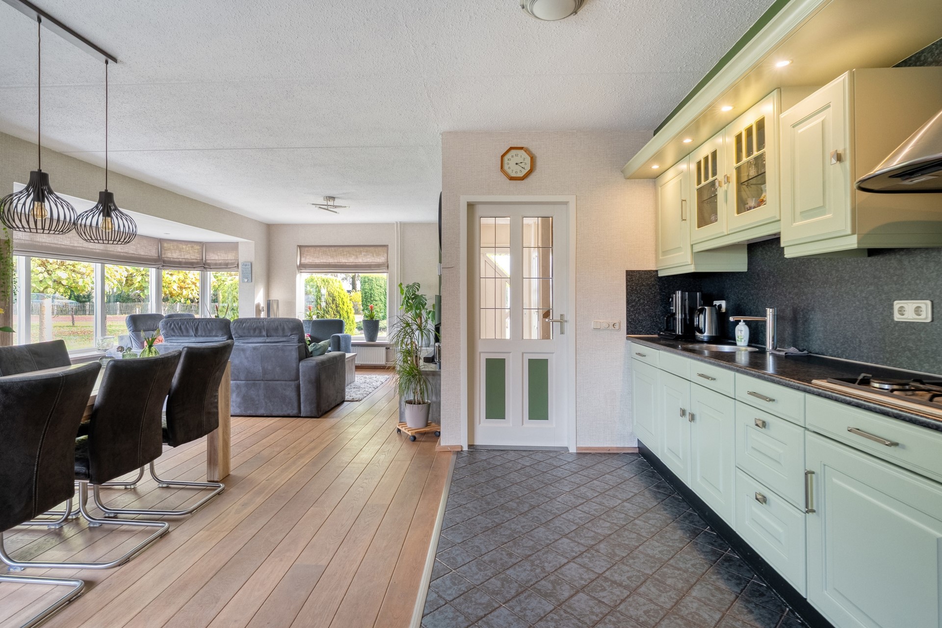 Aan de achterzijde bevinden zich de woonkeuken, bijkeuken en aangebouwde berging.