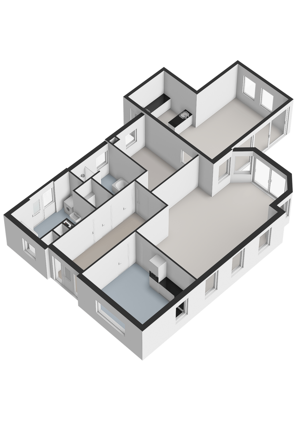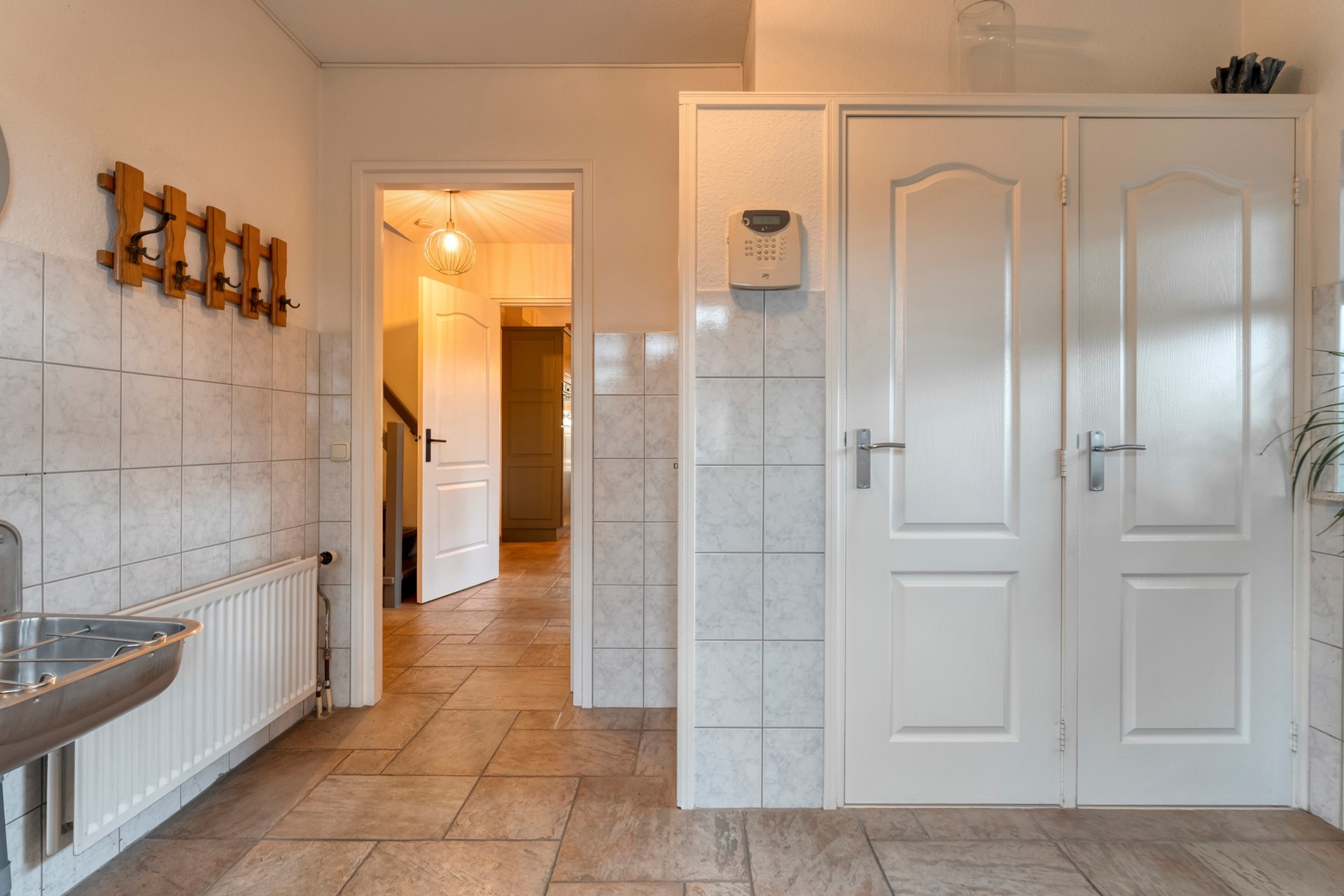 Middels zij-entree betreedt men de hal met toegang tot de meerdere vertrekken. Zo heeft u toegang tot de woonkeuken en diepe woonkamer met erker. Maar ook de bijkeuken met o.a. wasmachine aansluitingen, separaat toilet met fonteintje, badkamer (v.v. ligbad, douche en dubbele wastafelmeubel) en slaapkamer begane grond.