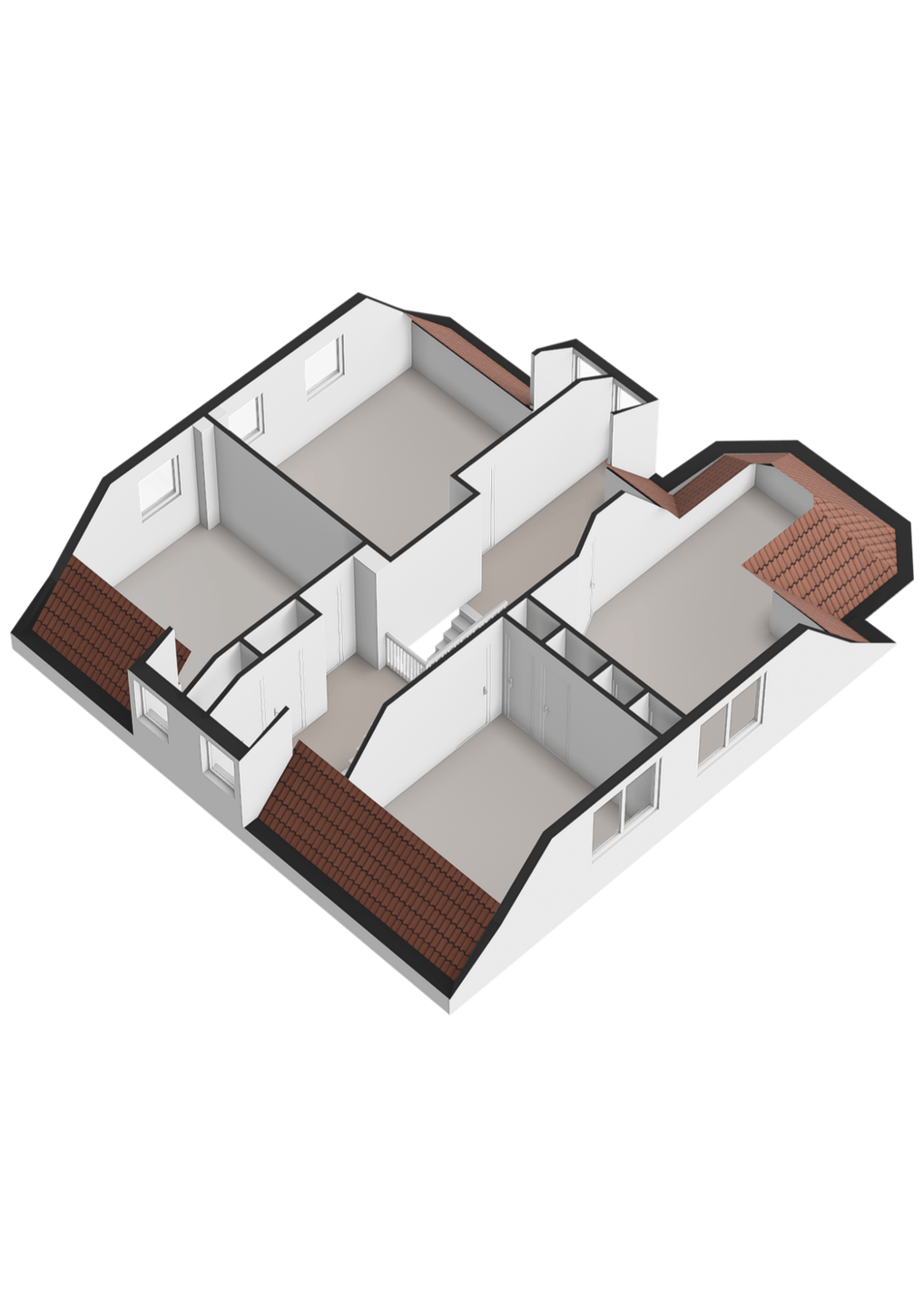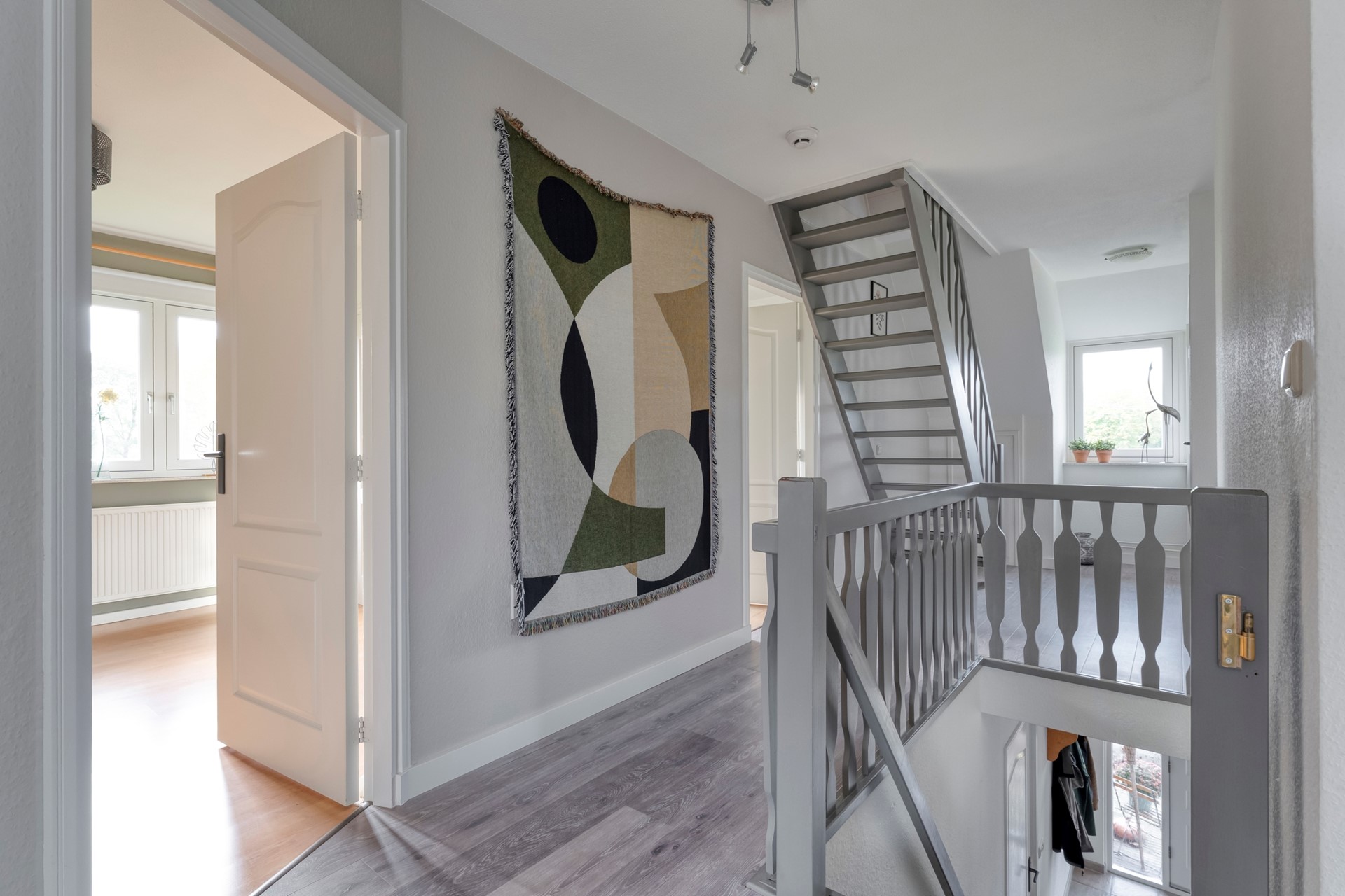 Overloop met meerdere inbouwkasten en vier ruime, speelse slaapkamers.