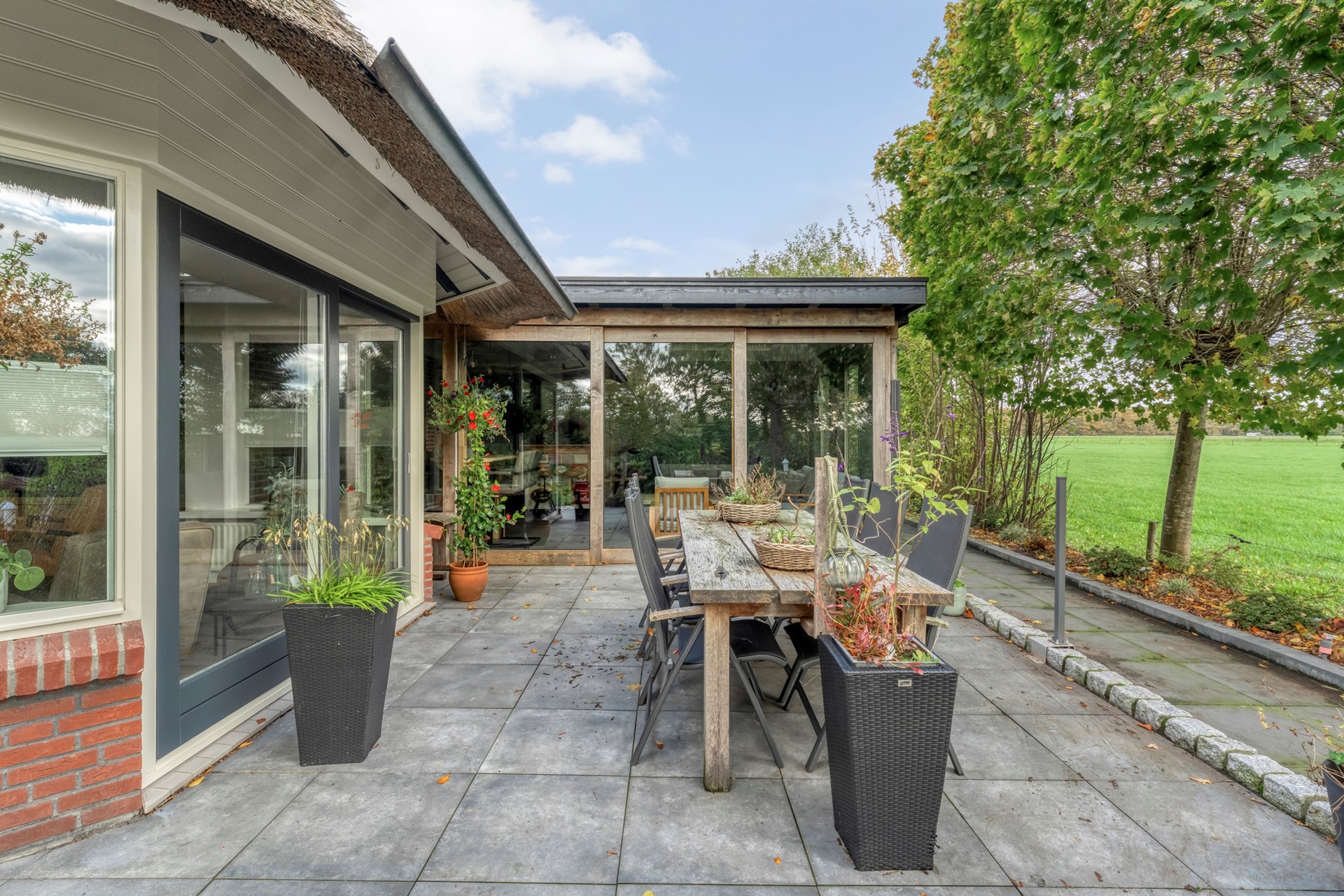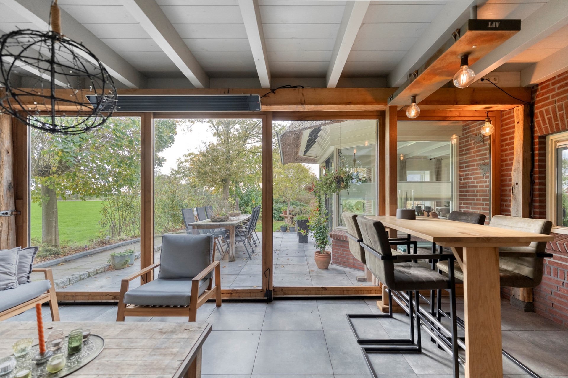 Recent heeft men een prachtige tuin-/buitenkamer aangebouwd met een prachtige grote glazen pui.