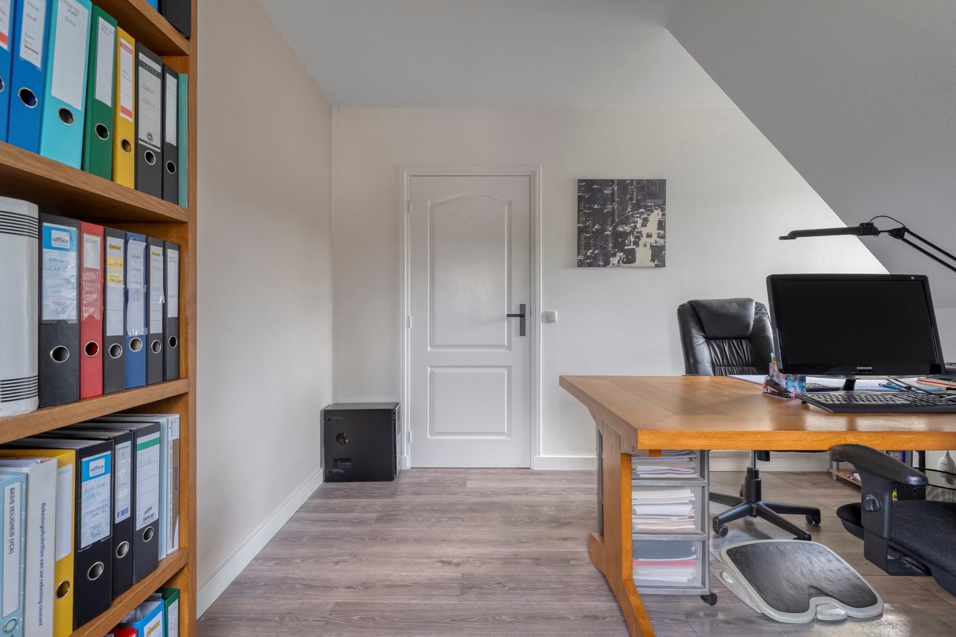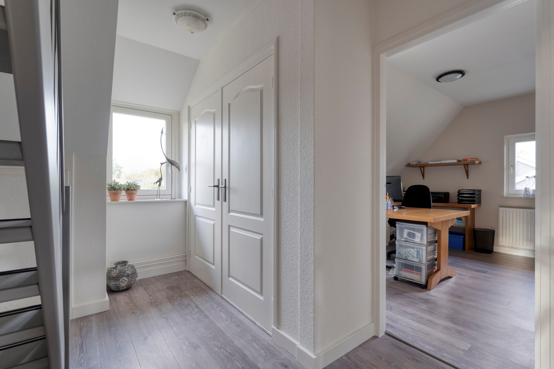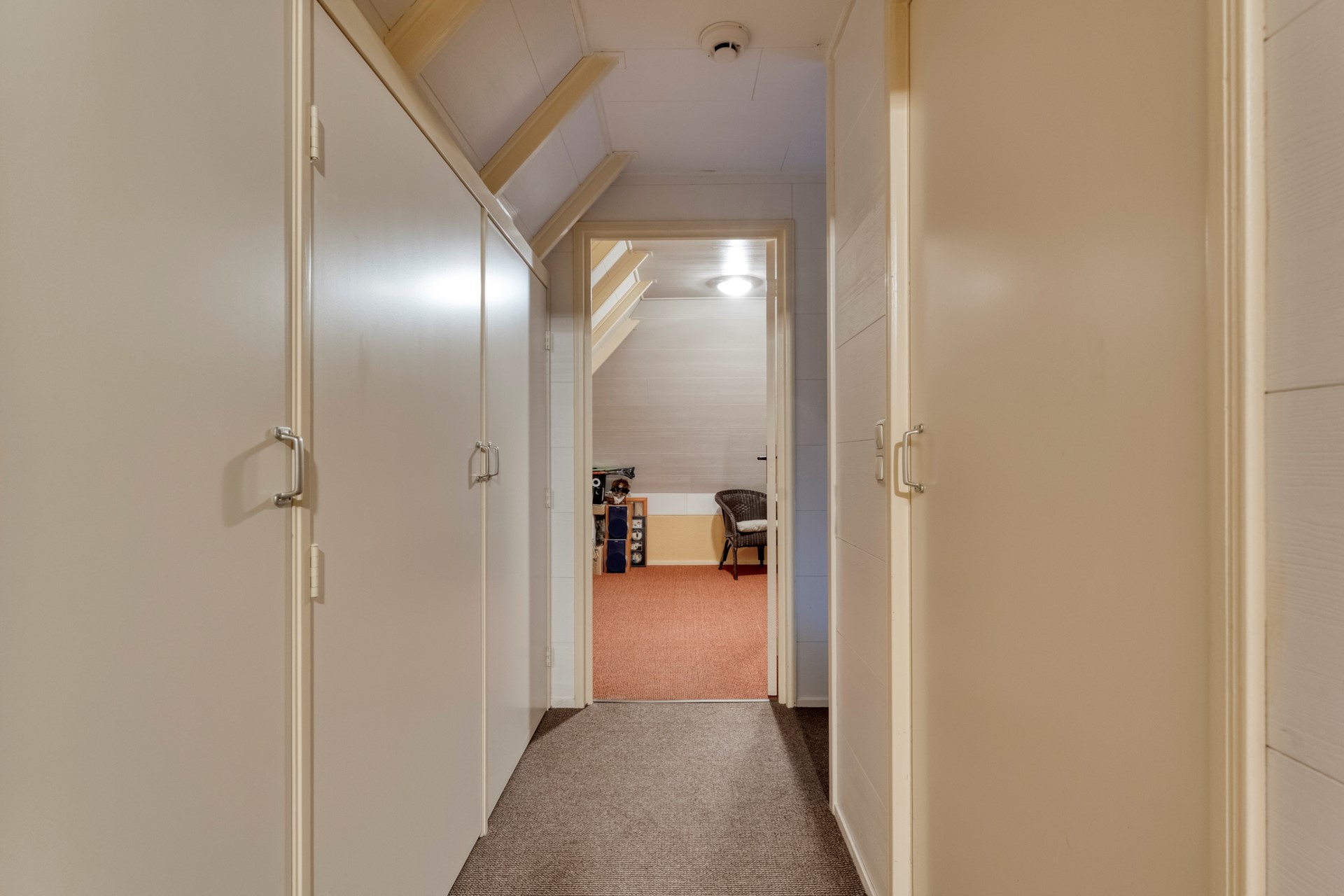 Overloop met inbouwkasten, technische ruimte met o.a. c.v. installatie (Nefit HR, 2015) en twee (slaap-) cq. (werk)kamers.