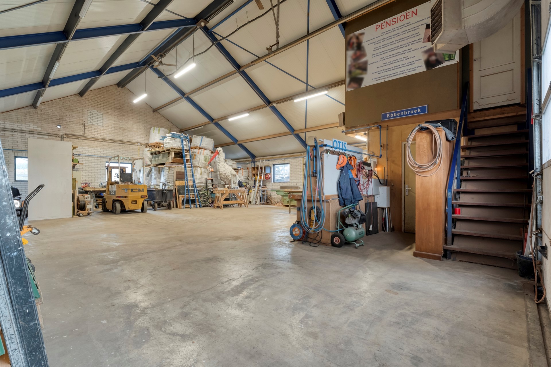 Een bijzonder grote werkruimte me separate berging incl. boiler vast, kleine kitchenette en aangebouwde dubbele garage.