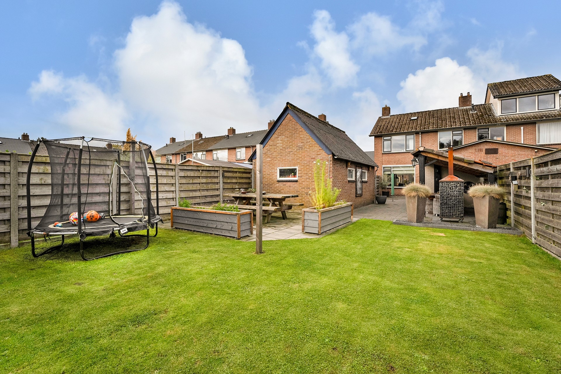 Eén blik op deze tuin en je weet: hier kun je nog eens wat kwijt. De achtertuin is diep, zó diep dat je er gerust een trampoline, speeltoestel, moestuin, loungehoek én vuurkorf (of allemaal!) kwijt kunt. Met meerdere terrassen heb je altijd zon, schaduw of juist een knus hoekje. Geef die barbecue-uitnodiging maar vast vorm; hier gaan je zomeravonden nooit meer hetzelfde zijn.