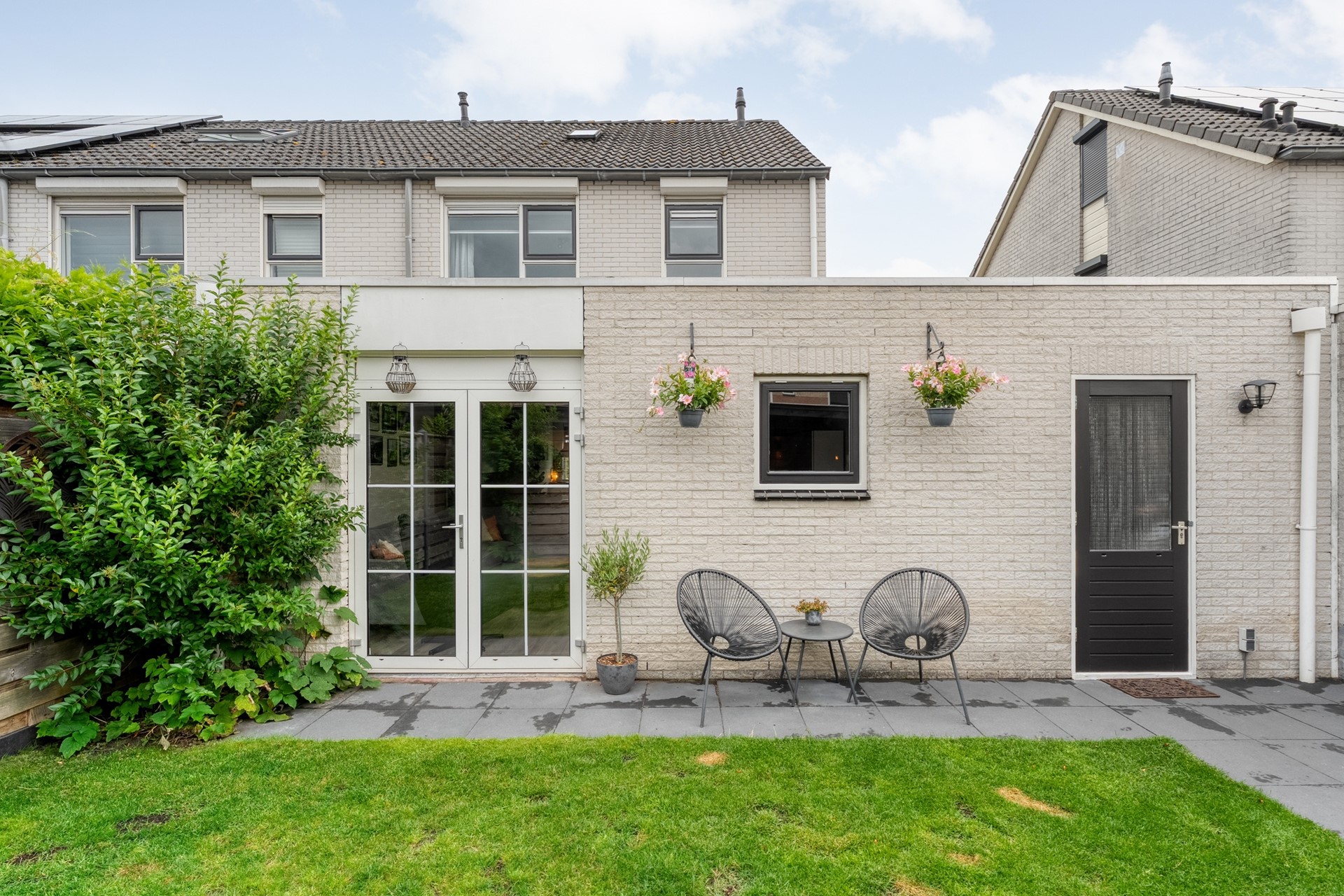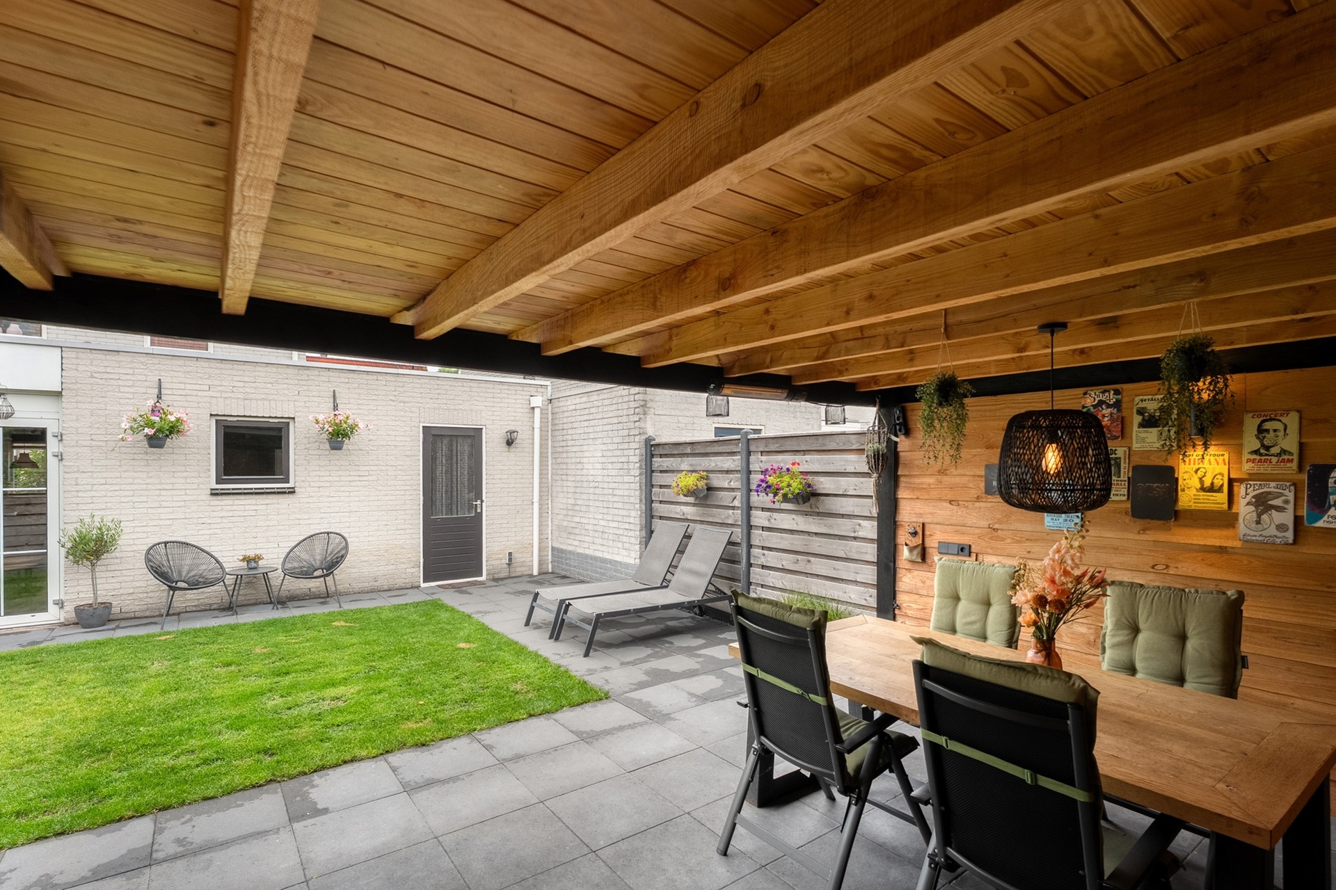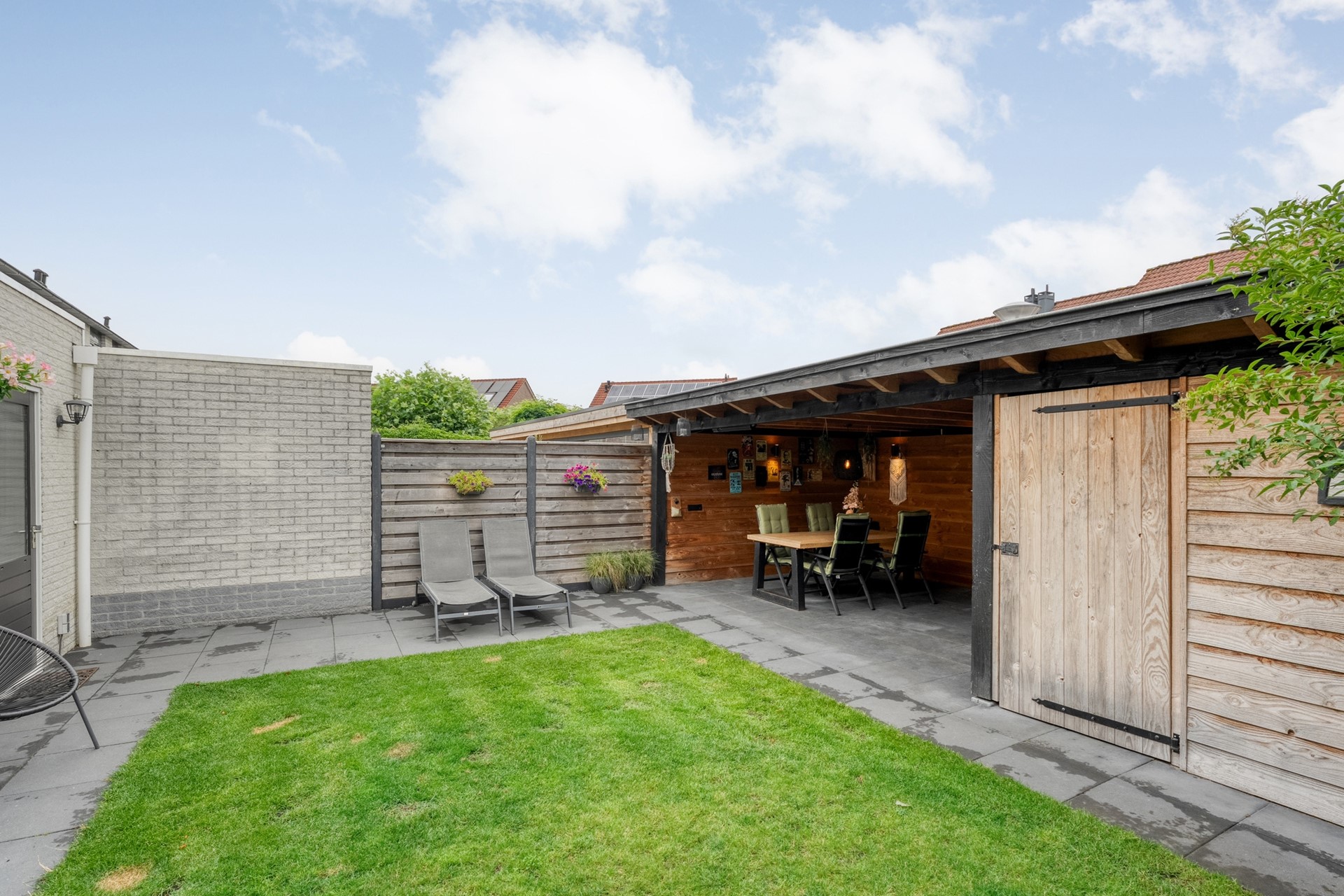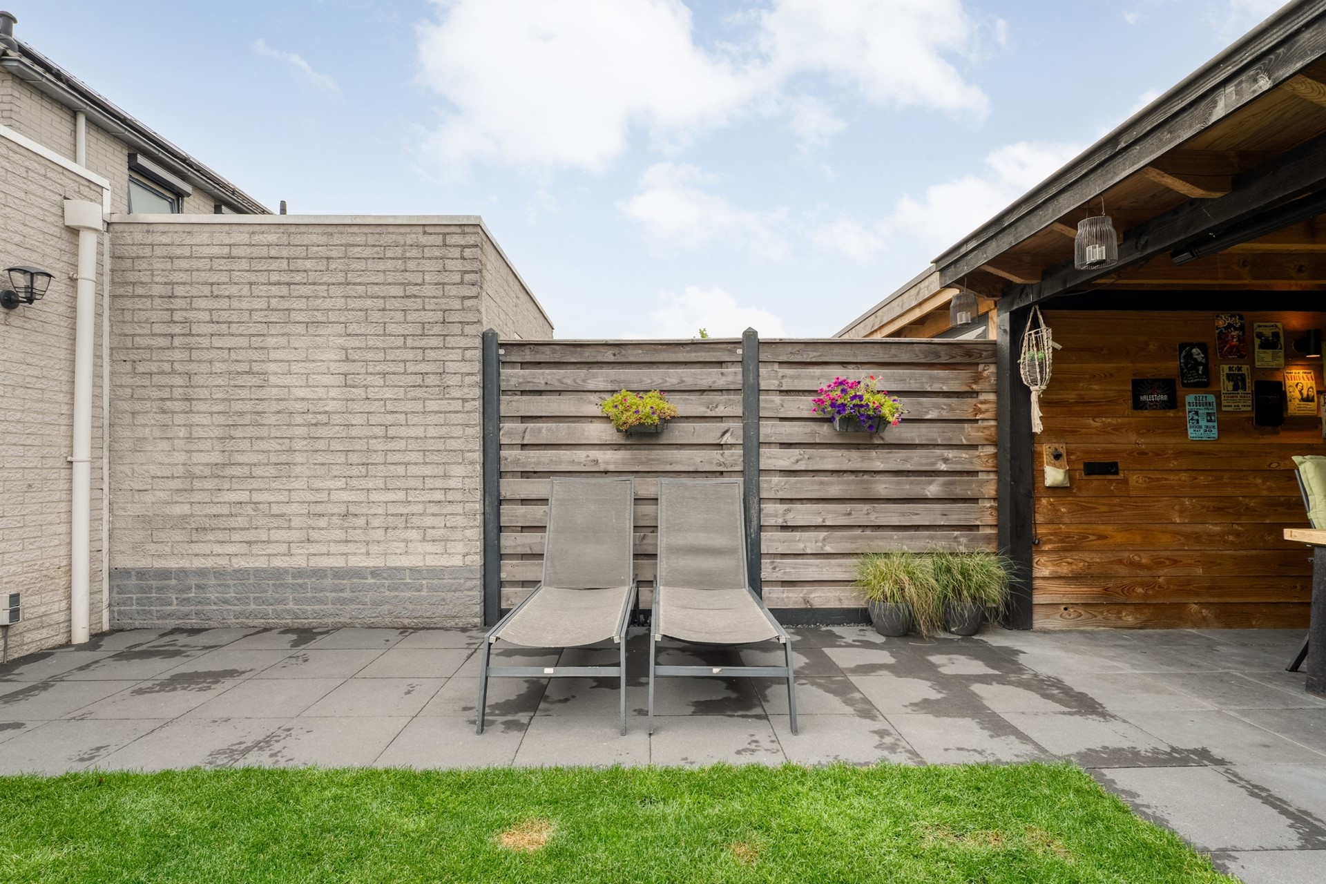 Achter in de tuin vind je nog een knusse houten schuur, afgewerkt met een gezellige overkapping. Wat een heerlijke plek om tot in de late uurtjes te borrelen. Iets verderop de aangebouwde stenen garage en aparte berging – ideaal voor fietsen, klusspullen, tuinmeubels en eigenlijk al het andere wat je liever uit het zicht hebt. Alles netjes op z’n plek, altijd.