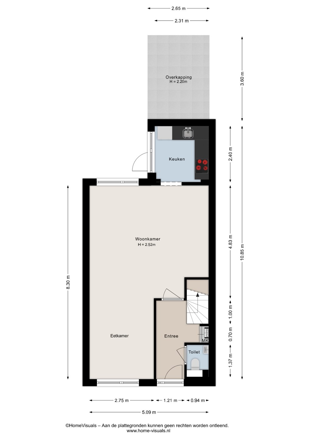 Middels entree betreed je de hal met toilet met fonteintje, meterkast, trapopgang en de ruime woonkamer welke speels is ingedeeld waar je naar hartenlust nog allerlei indelingen kunt bedenken. Aan de achterzijde is de eigentijdse hoekkeuken geplaatst met o.a. koelkast, vaatwasser, combimagnetron en inductiekookplaat met afzuiging.