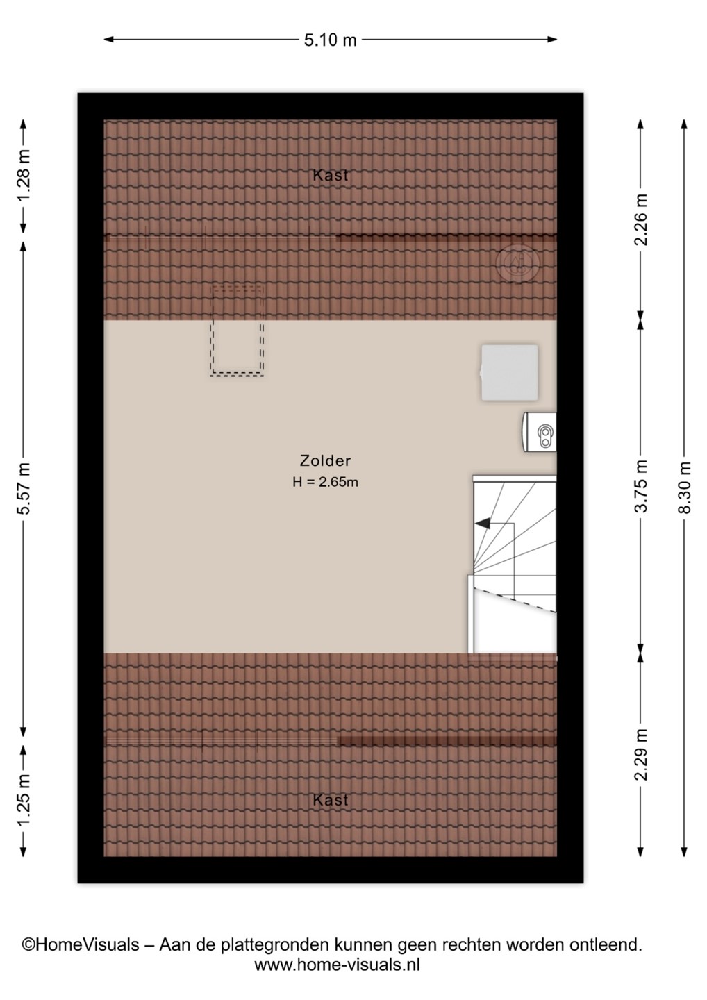 Ruime bergzolder waar eenvoudig extra kamers te creëren zijn.