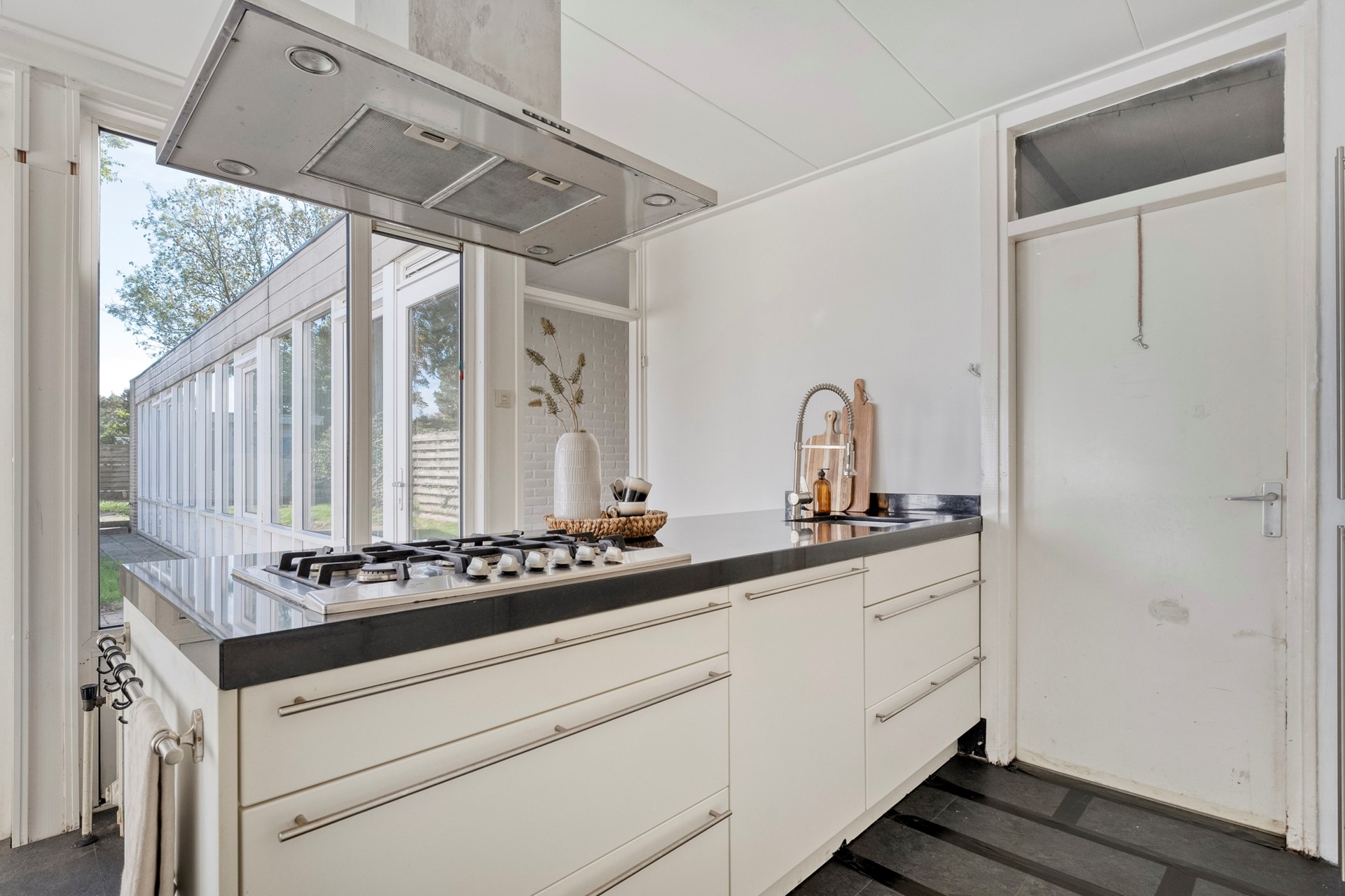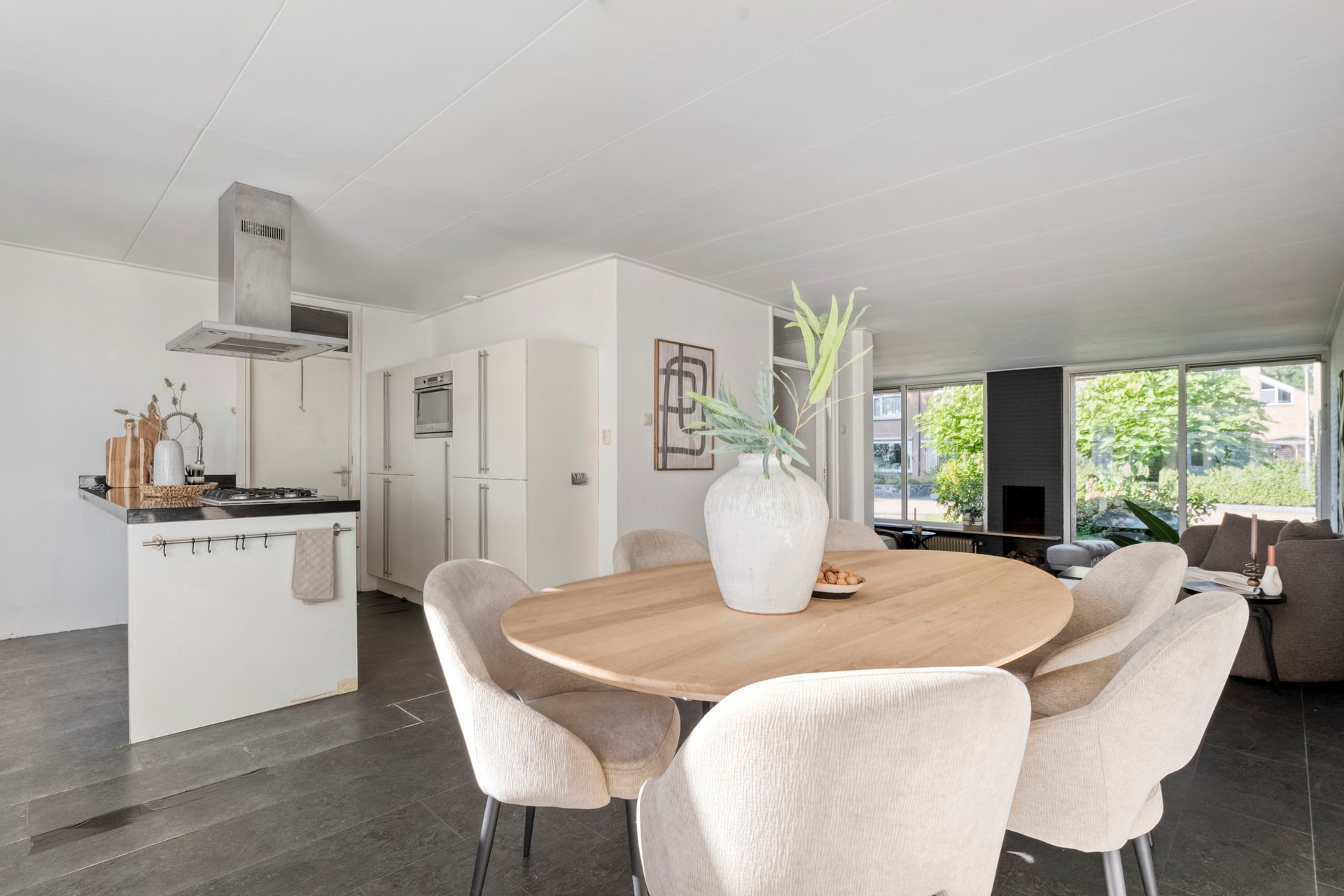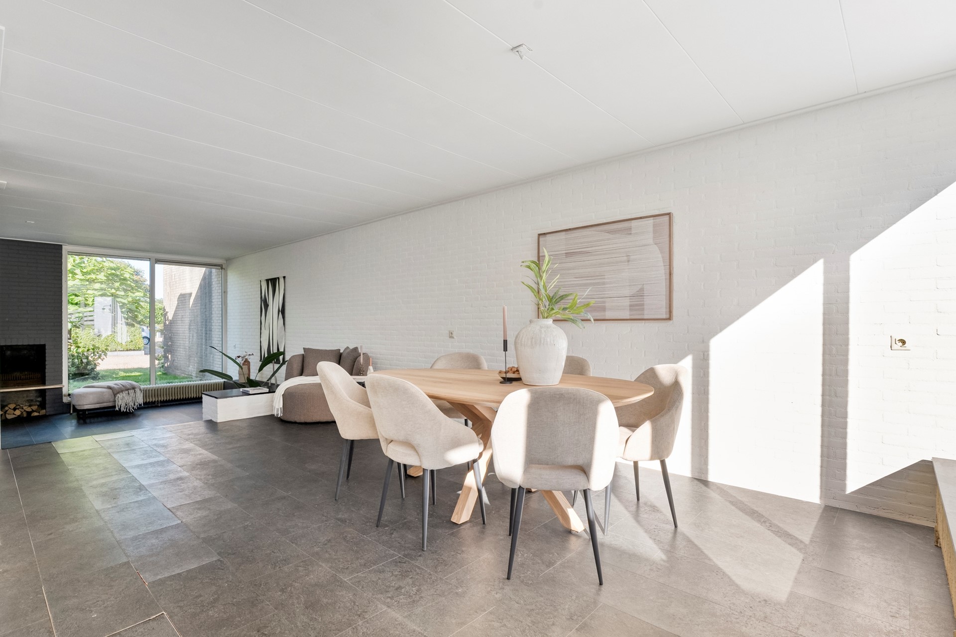 Wat meteen in het oog springt als je binnenkomt, is het speelse niveauverschil tussen de woonkamer en de woonkeuken. Hierdoor krijgt de ruimte nét dat beetje extra sfeer. Voor de gezelligheid kun je samen koken, borrelen of lekker hangen op de bank zonder op elkaars lip te zitten, maar het contact blijft toch behouden.