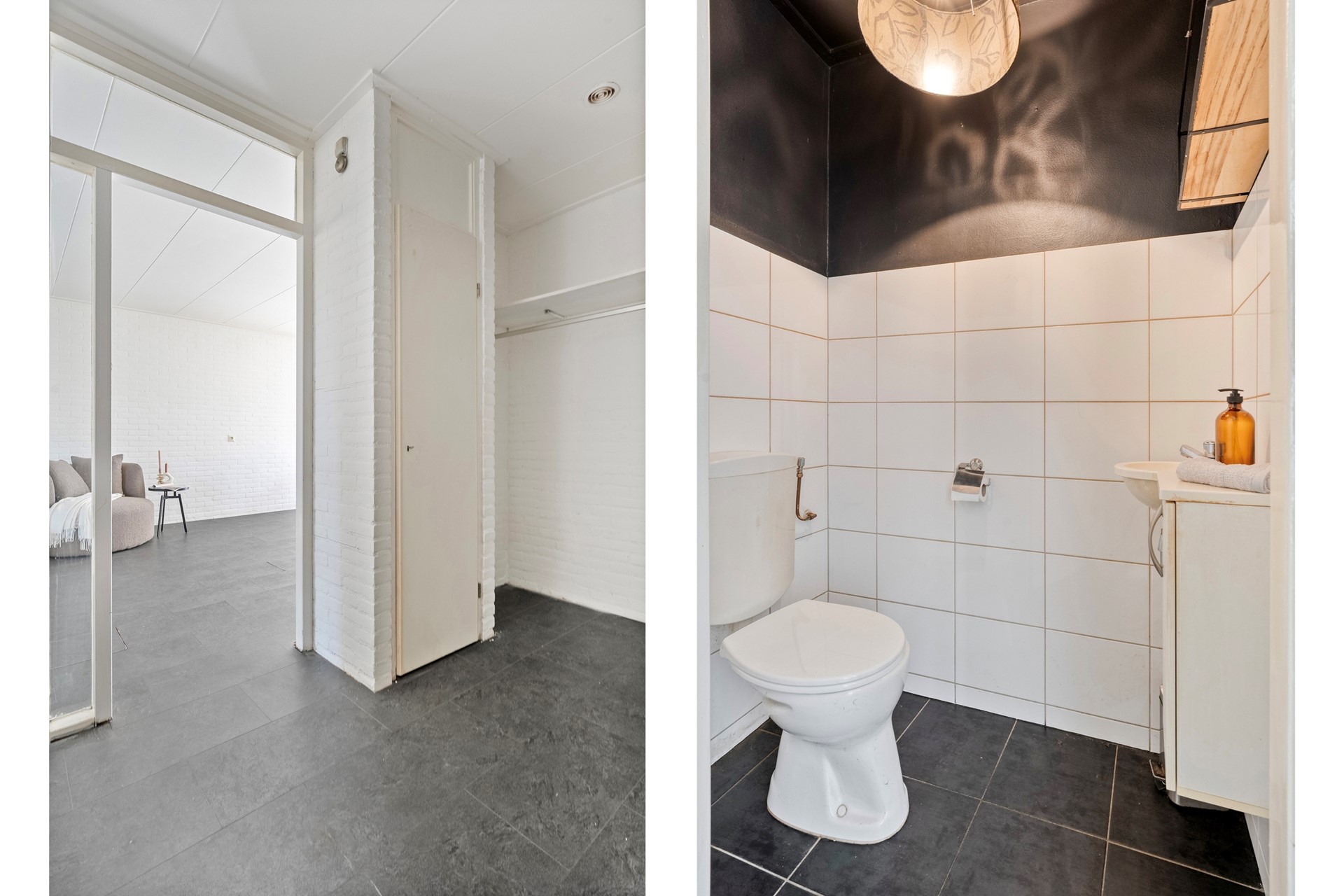 Middels overdekt entree (via de carport) betreedt u de hal met o.a. meterkast, garderobenis en toilet met fonteintje.