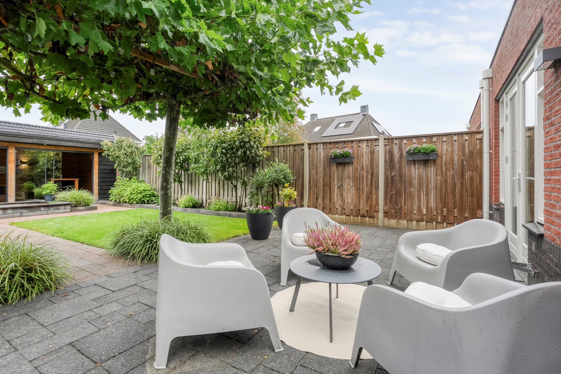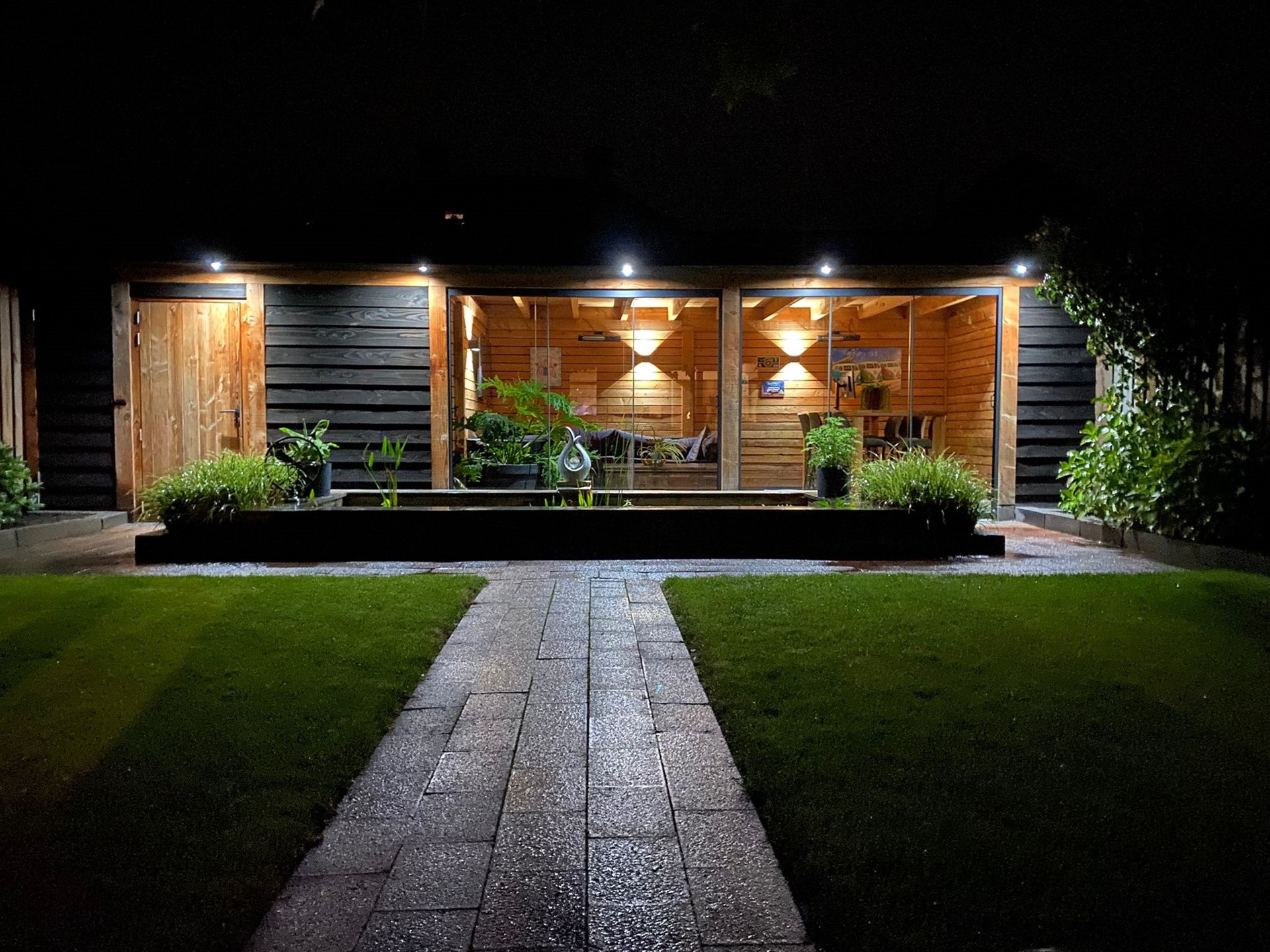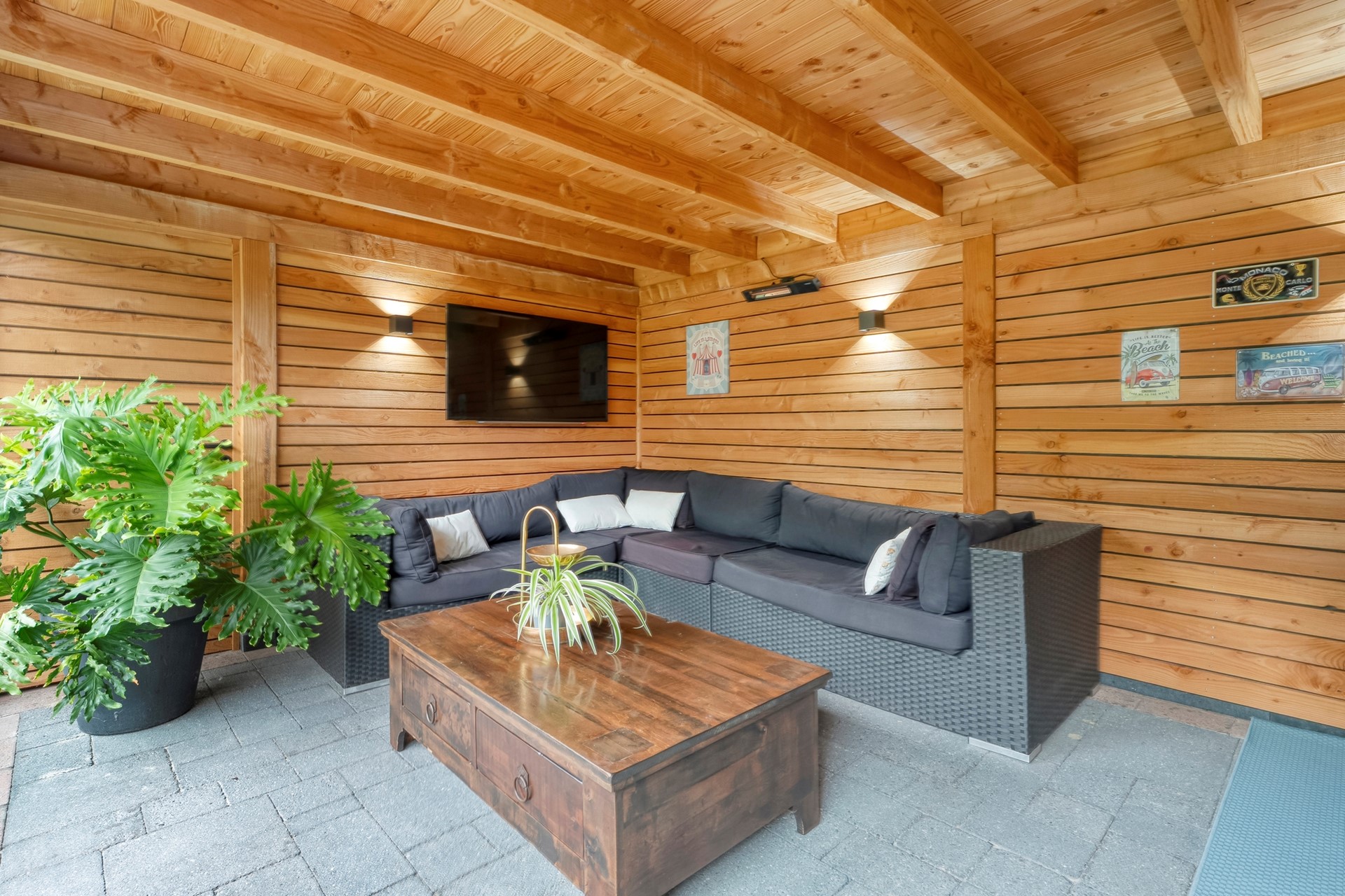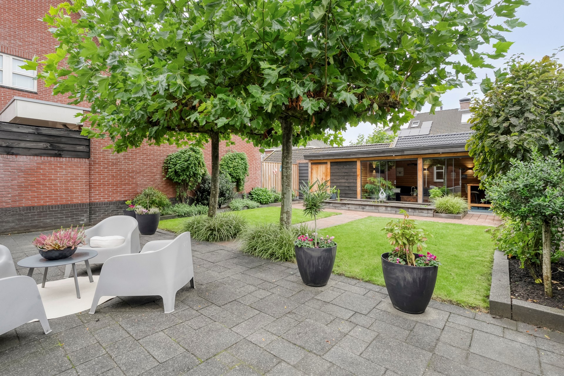 Ook buiten is het puur genieten. Aan de achterkant wacht een diepe tuin (bijna 20 meter diep) vol privacy, waar je je eigen groene paradijs hebt. Of gewoon neerstrijken in de luxe en tevens geïsoleerde tuinkamer . Lekker onder het dak met een koffie, glaasje wijn of goed boek – ongeacht het weer zit je hier altijd (letterlijk én figuurlijk) goed. Even uitpuffen doe je terwijl je luistert naar het gekabbel van de vijverpartij. Je fiets of hobbyspullen kwijt? Precies: daarvoor is de geïsoleerde, houten berging perfect.