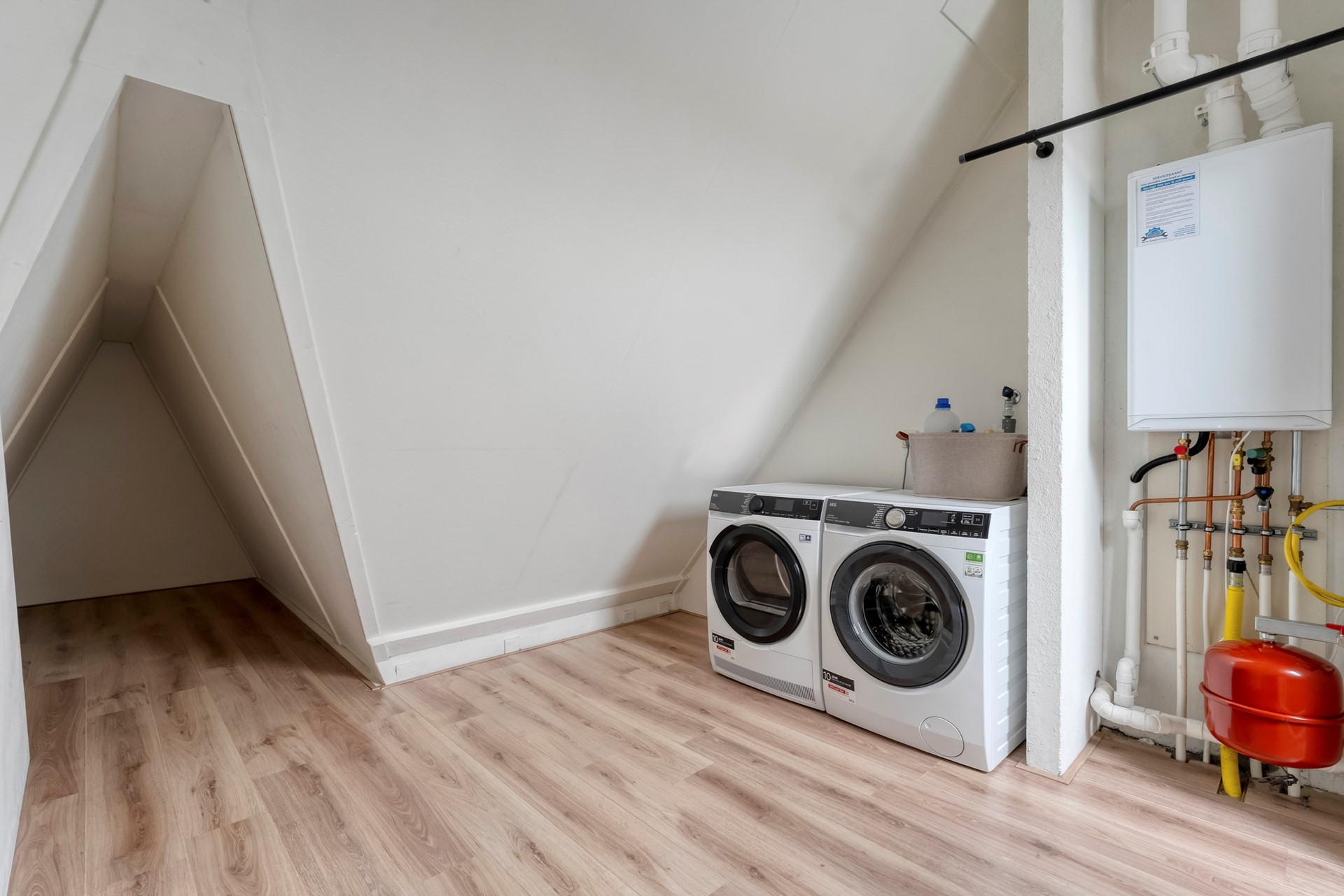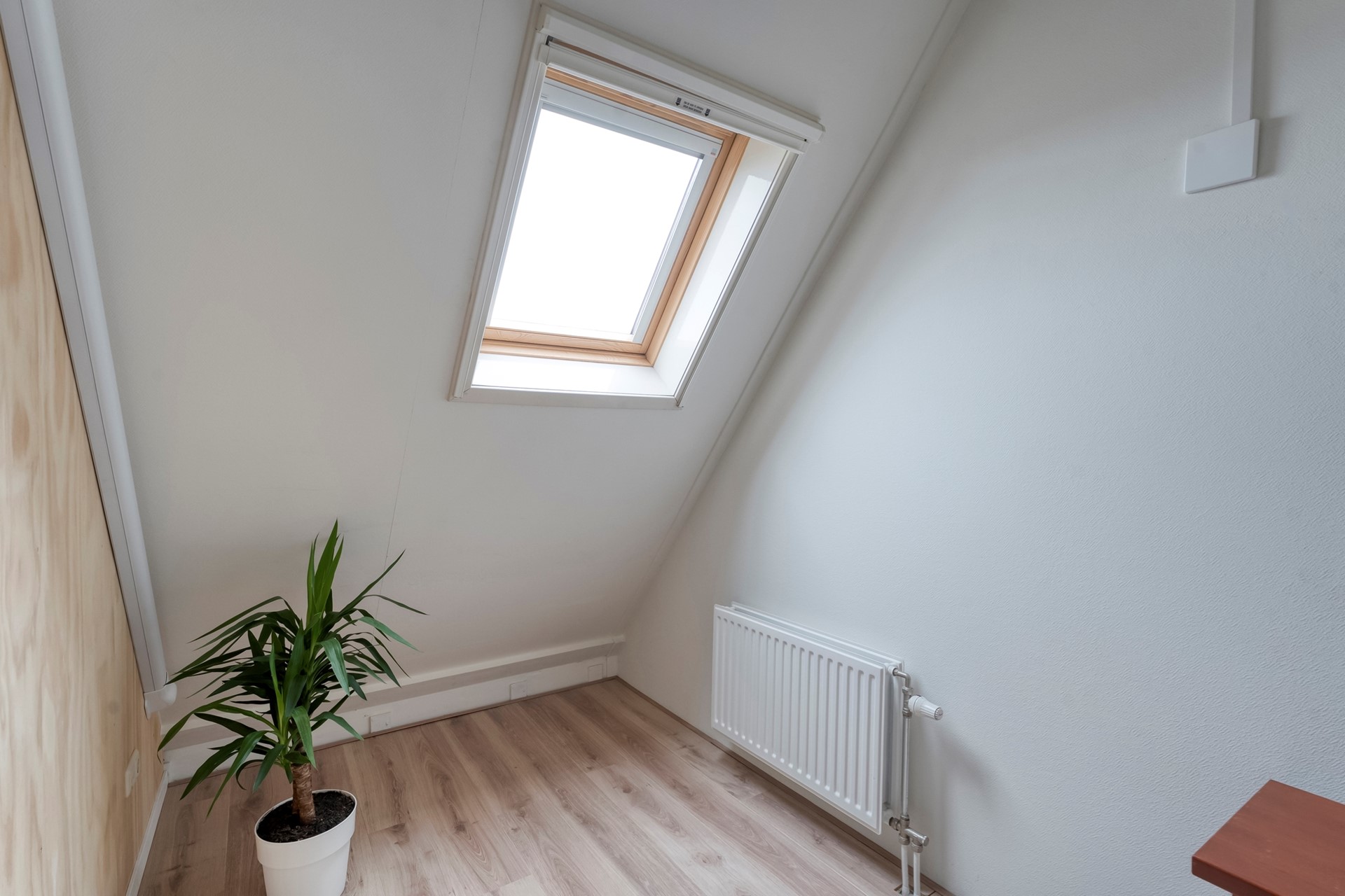 Ruime zolderverdieping met vierde slaapkamer, c.v. ruimte en verschillende ruimtes voor berging.