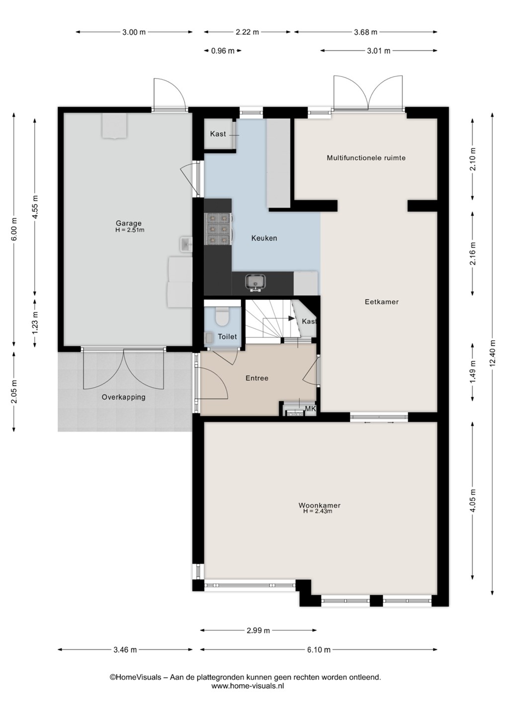De indeling van deze ruim bemeten tweekapper is als volgt: