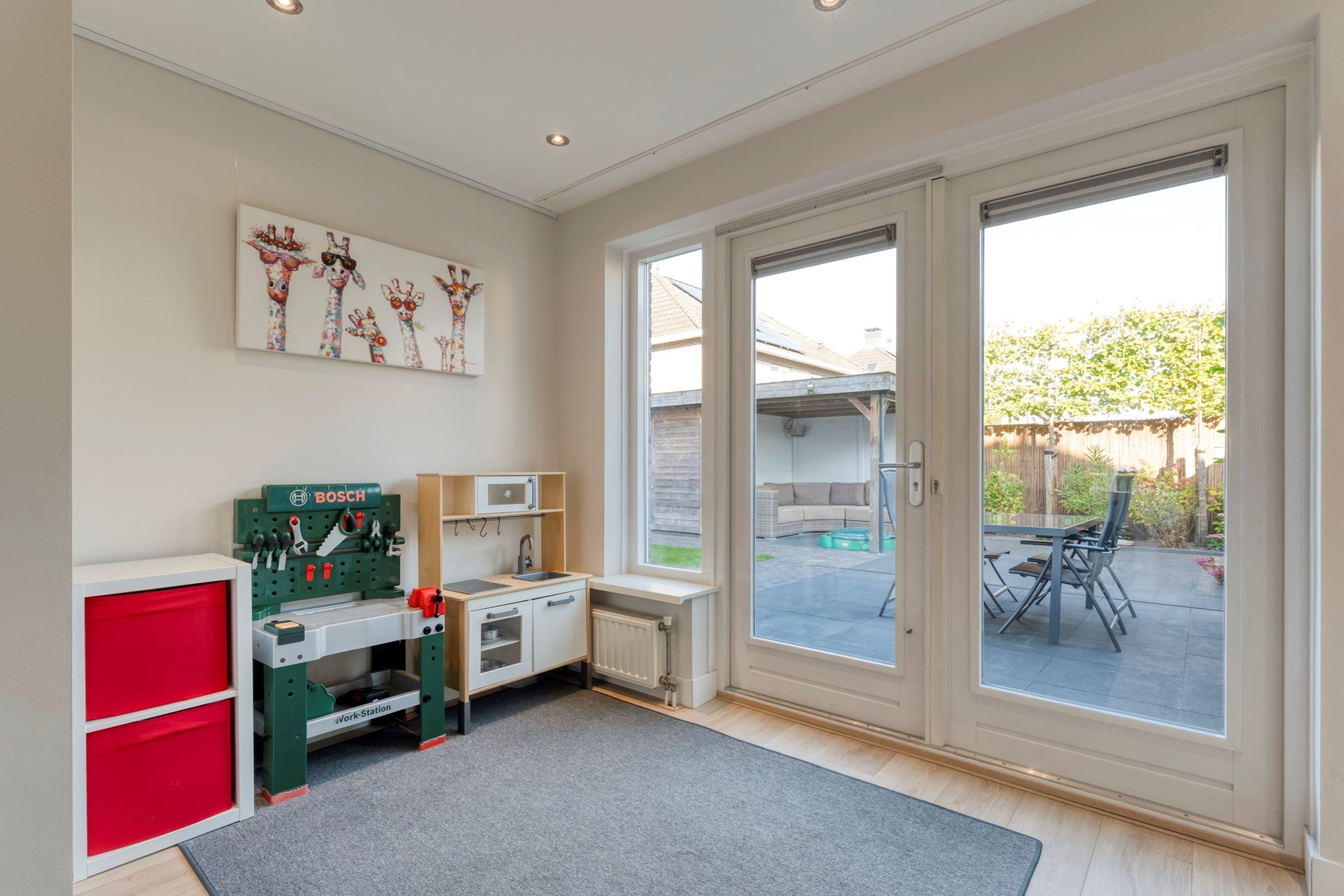 Via openslaande tuindeuren betreedt je….