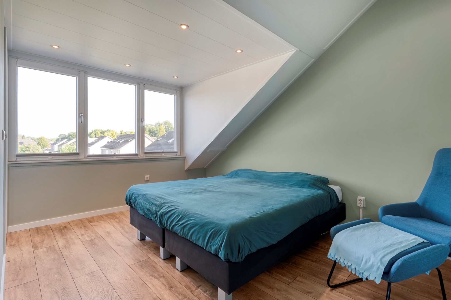 En dan die dakkapel achter, die over de volledige breedte loopt: het maakt de zolder echt bijzonder ruim, licht en functioneel. Of je nu tieners hebt die graag hun eigen stekkie willen, wilt thuiswerken met ruimte en uitzicht, óf een eigen man cave of hobbyruimte zoekt, dit huis geeft je die vrijheid.