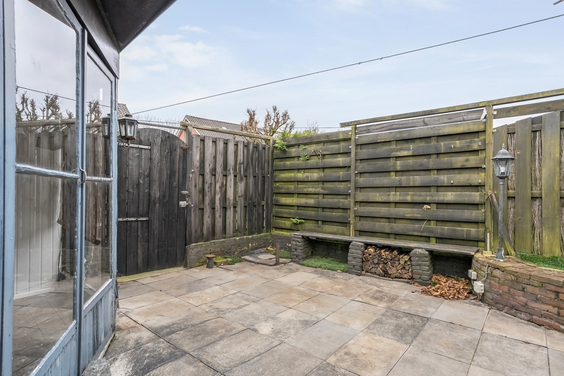 En dan die tuin... Wow! Je verwacht het misschien niet bij een tussenwoning, maar aan de achterzijde ligt een bijzonder diepe en vooral brede tuin. Hier is genoeg plek voor een loungeset, speelplek voor kinderen of een moestuin waar je groentes kweekt uit eigen bodem. En met die mooie houten berging annex prieel is er altijd plek voor je tuinspullen, fietsen of gewoon een gezellig plekje om te borrelen met vrienden. Hoe fijn: via de achterom ben je bovendien zó binnen of buiten, zonder door de woning te hoeven.