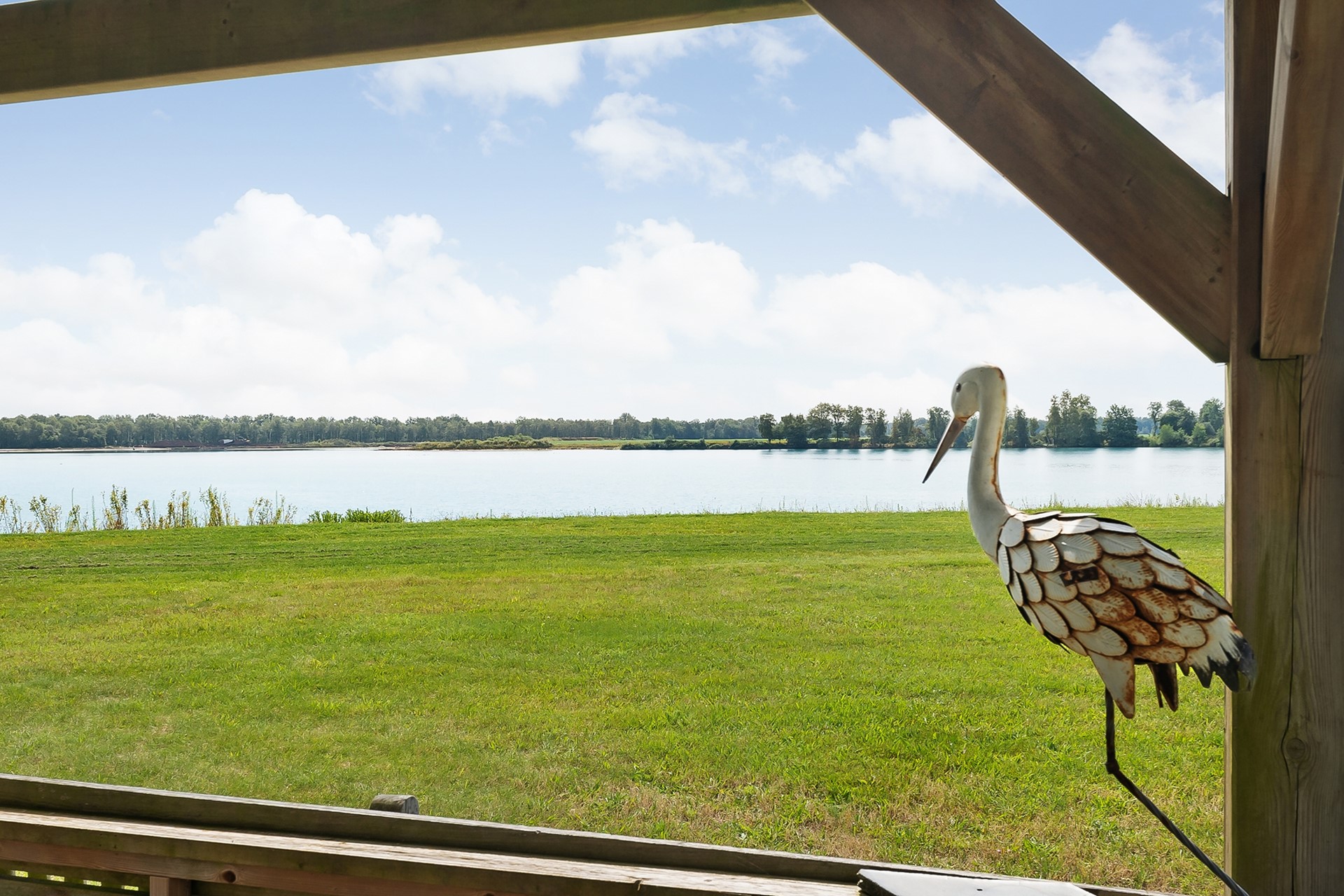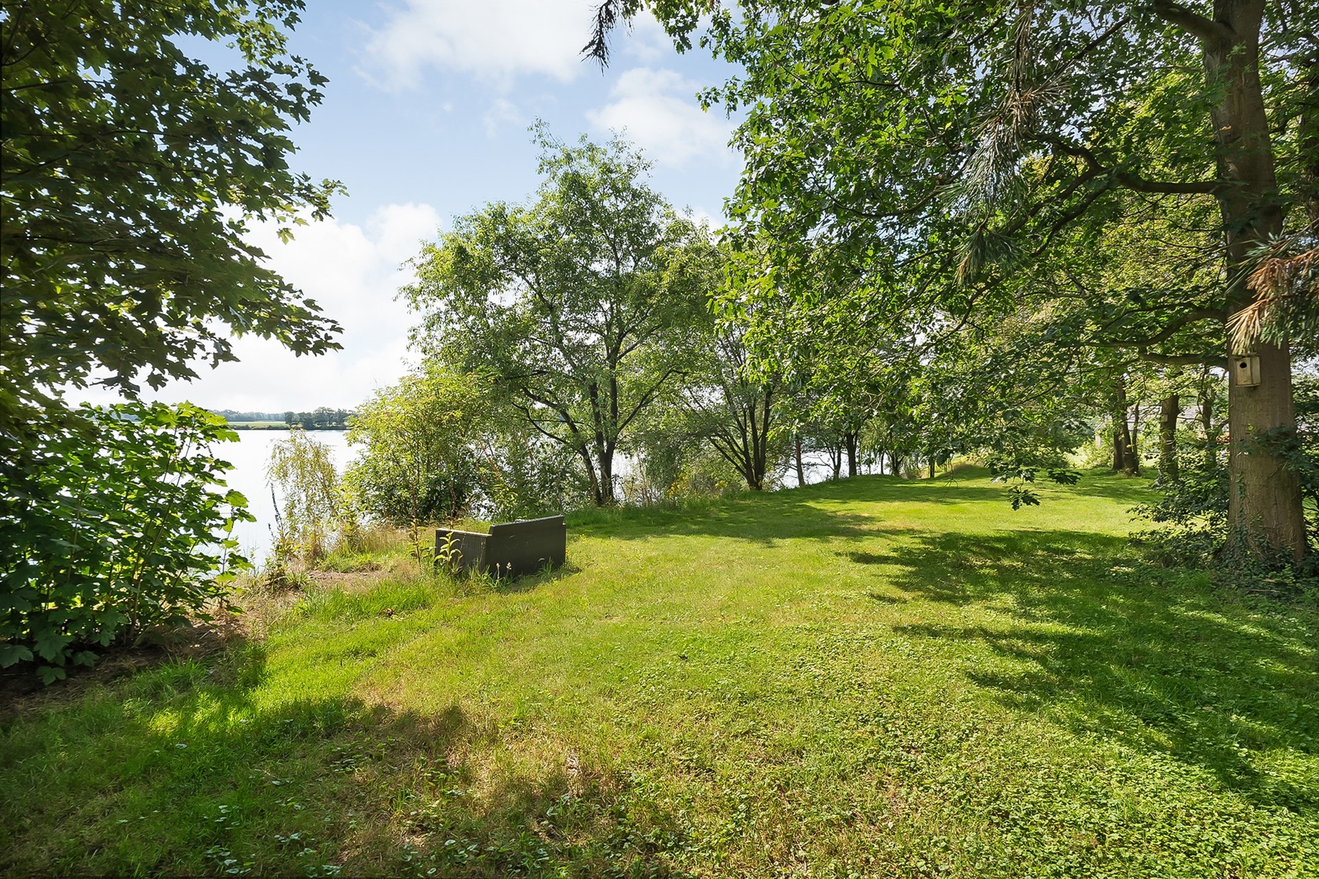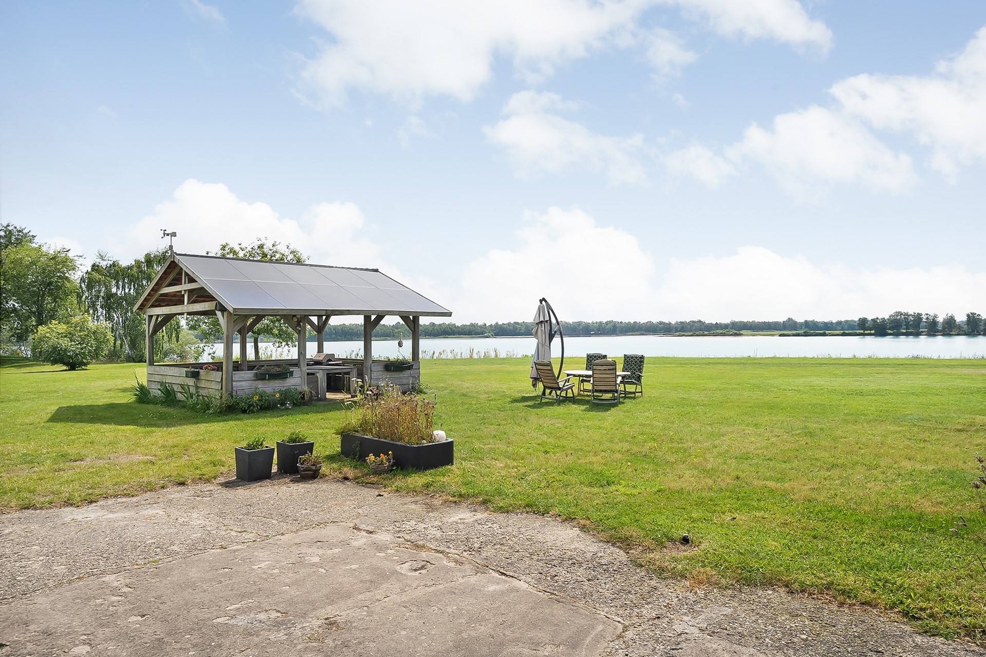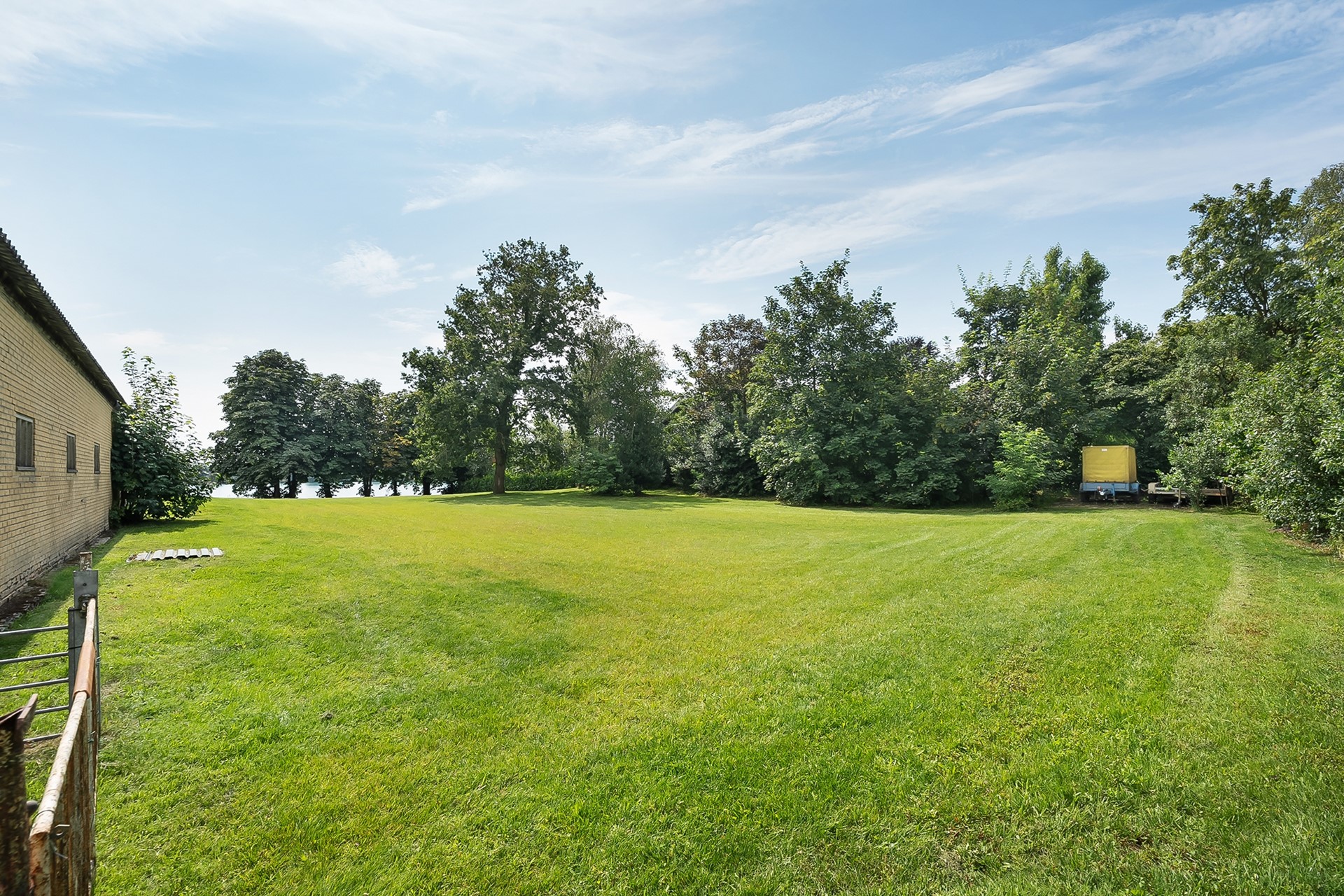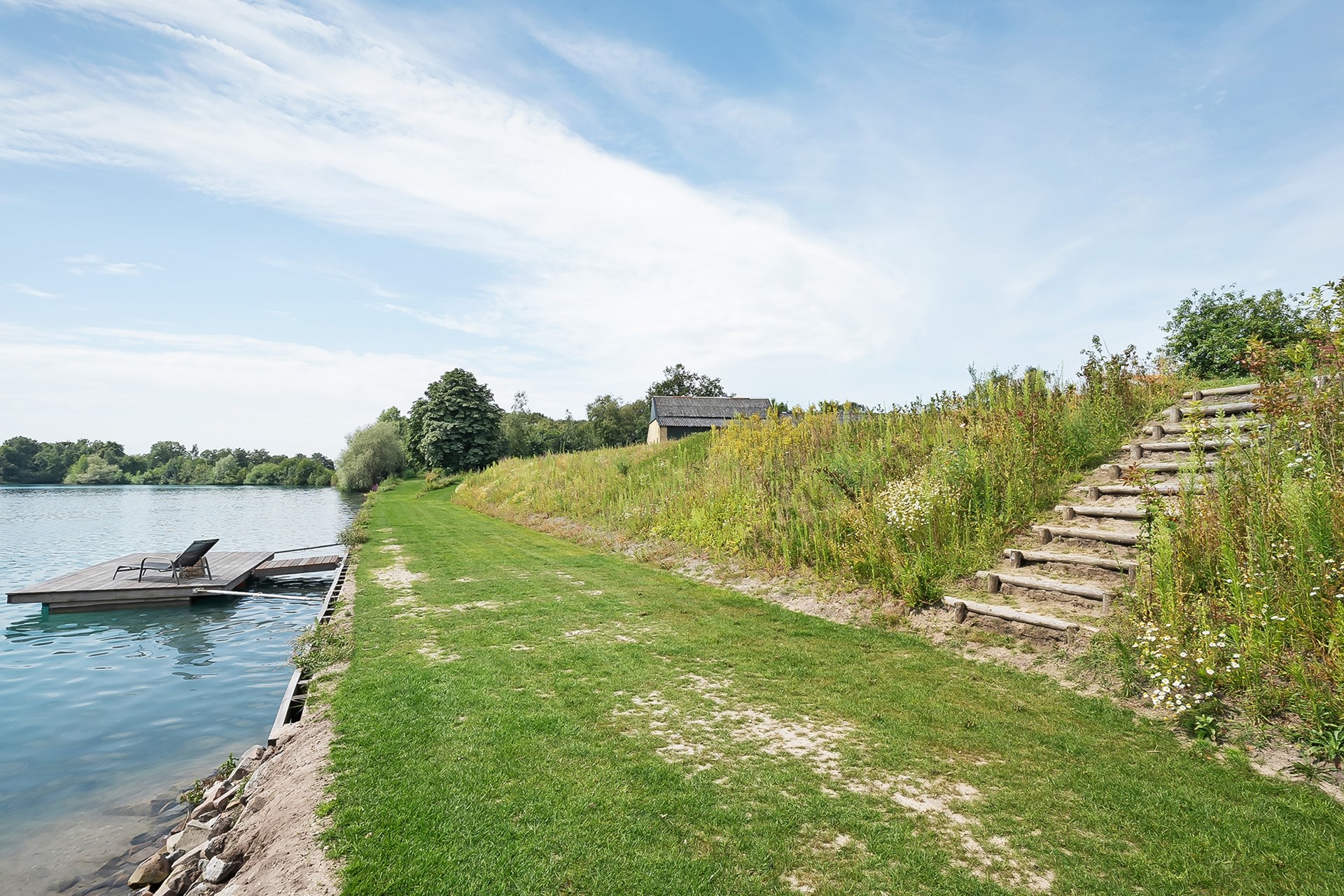 * Eigen water (deel van de achterliggende waterplas) over de volle breedte van het perceel, met