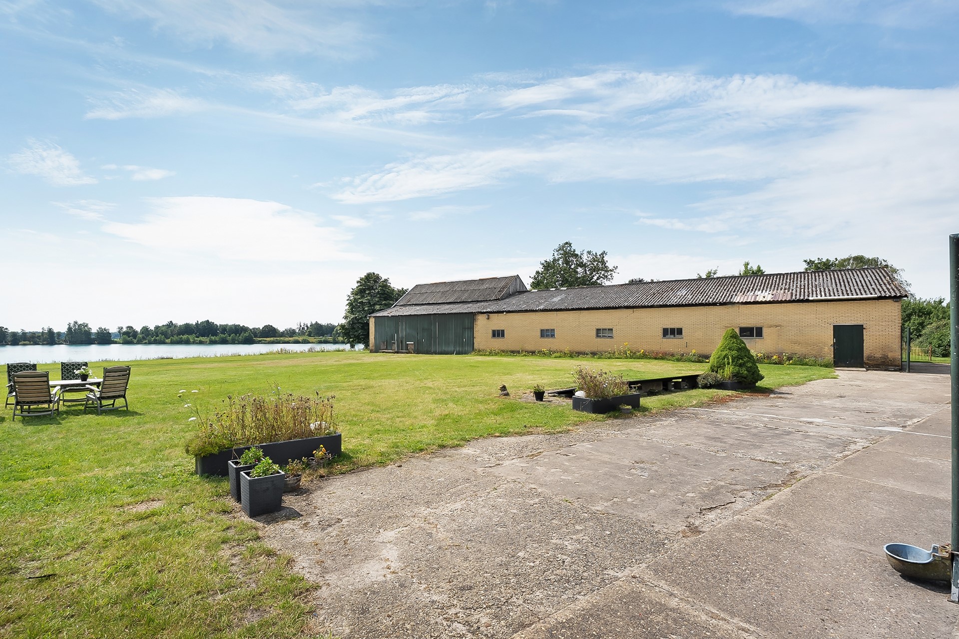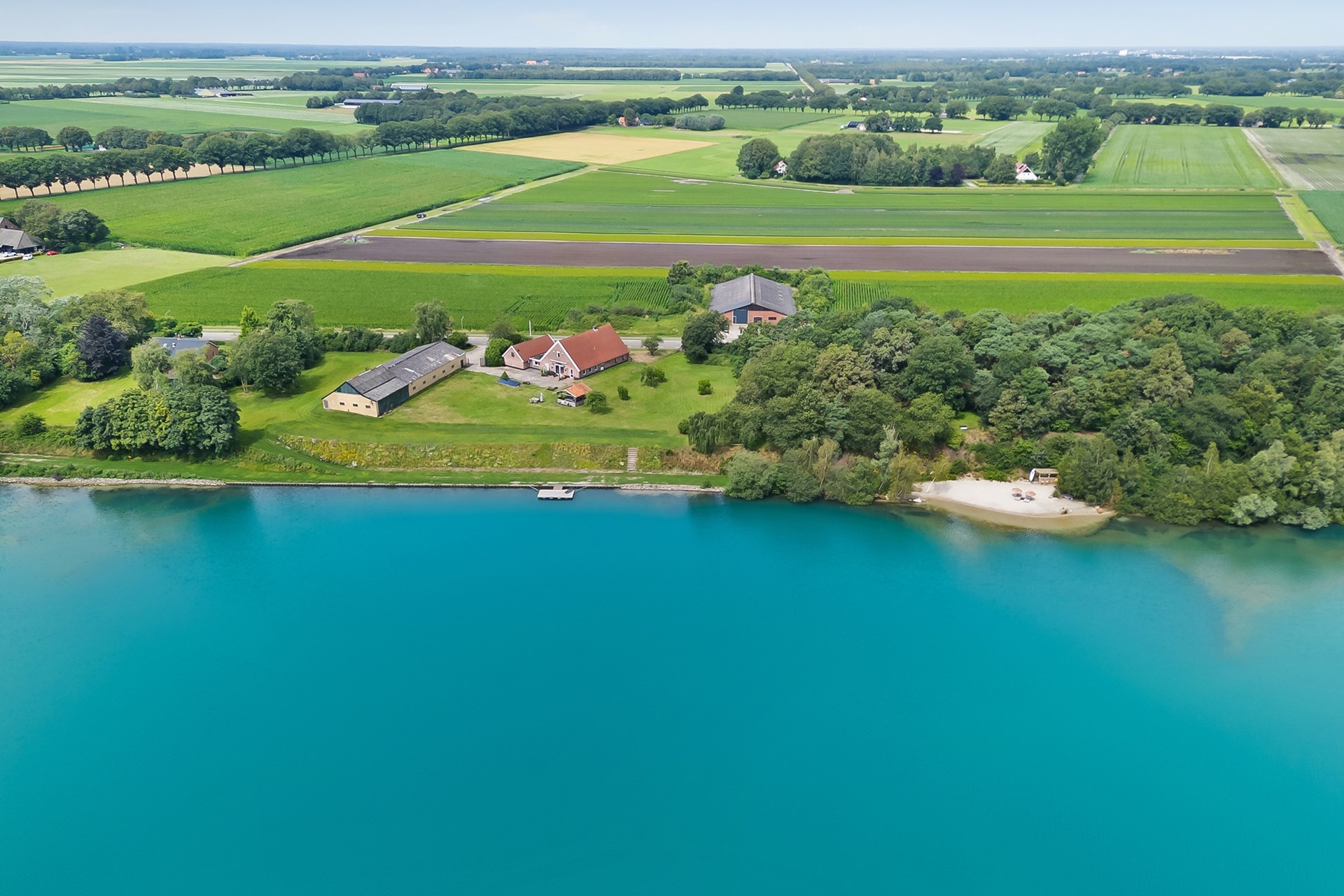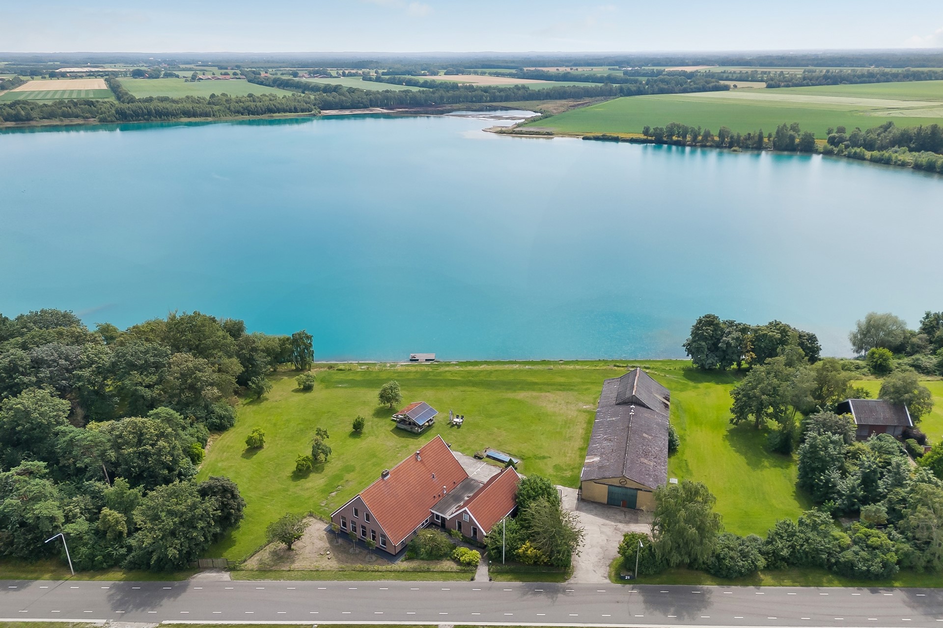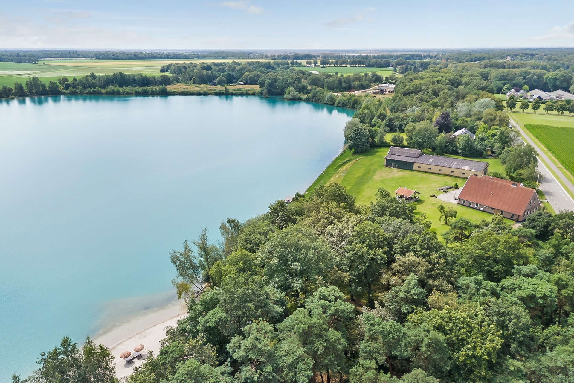 * Eigen water (deel van de achterliggende waterplas) over de volle breedte van het perceel, met