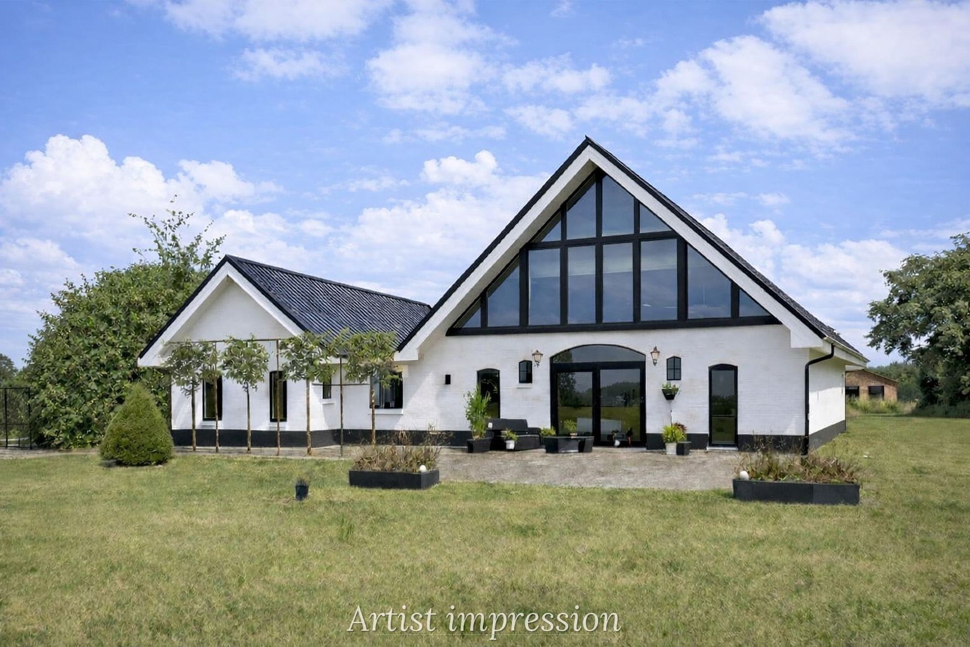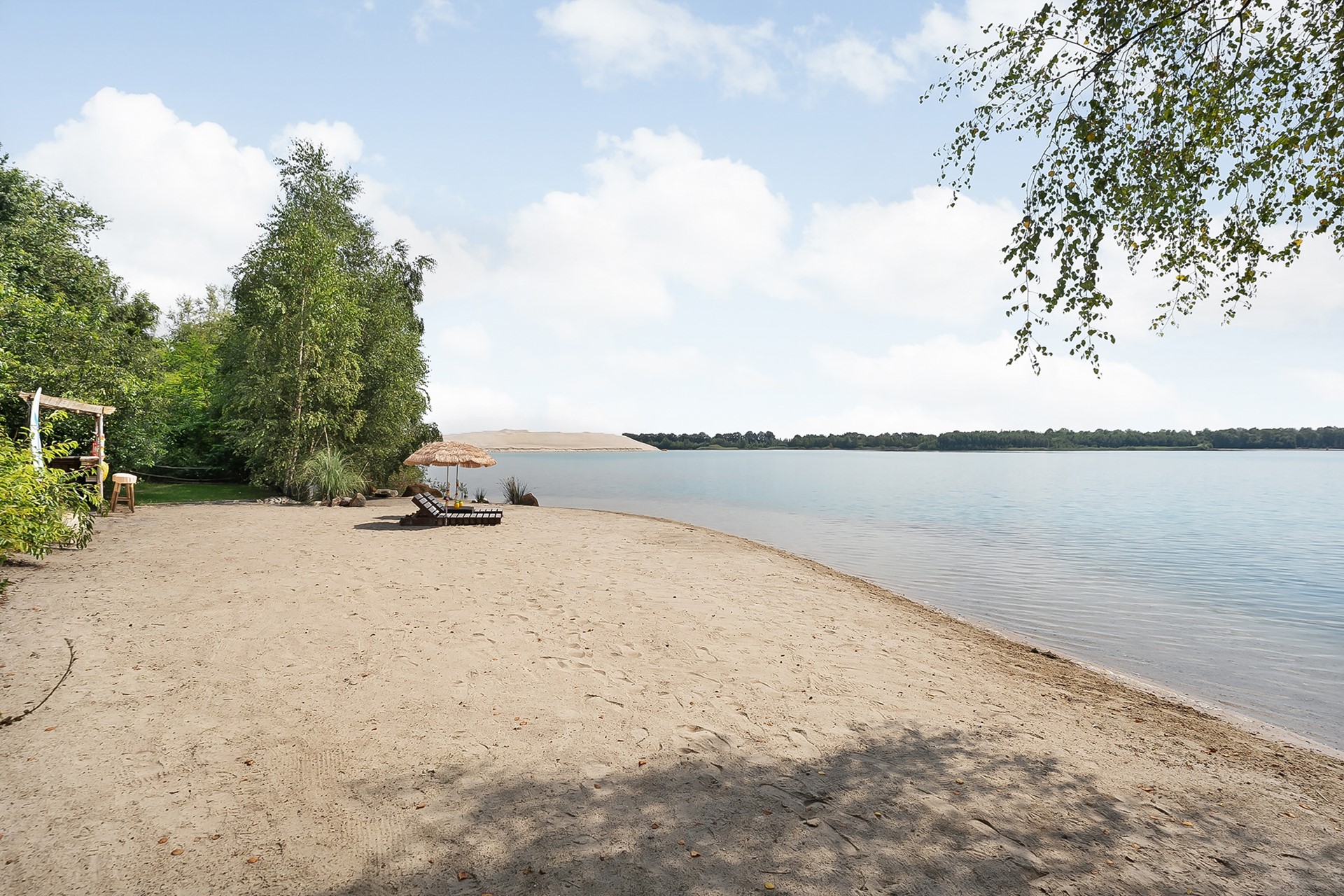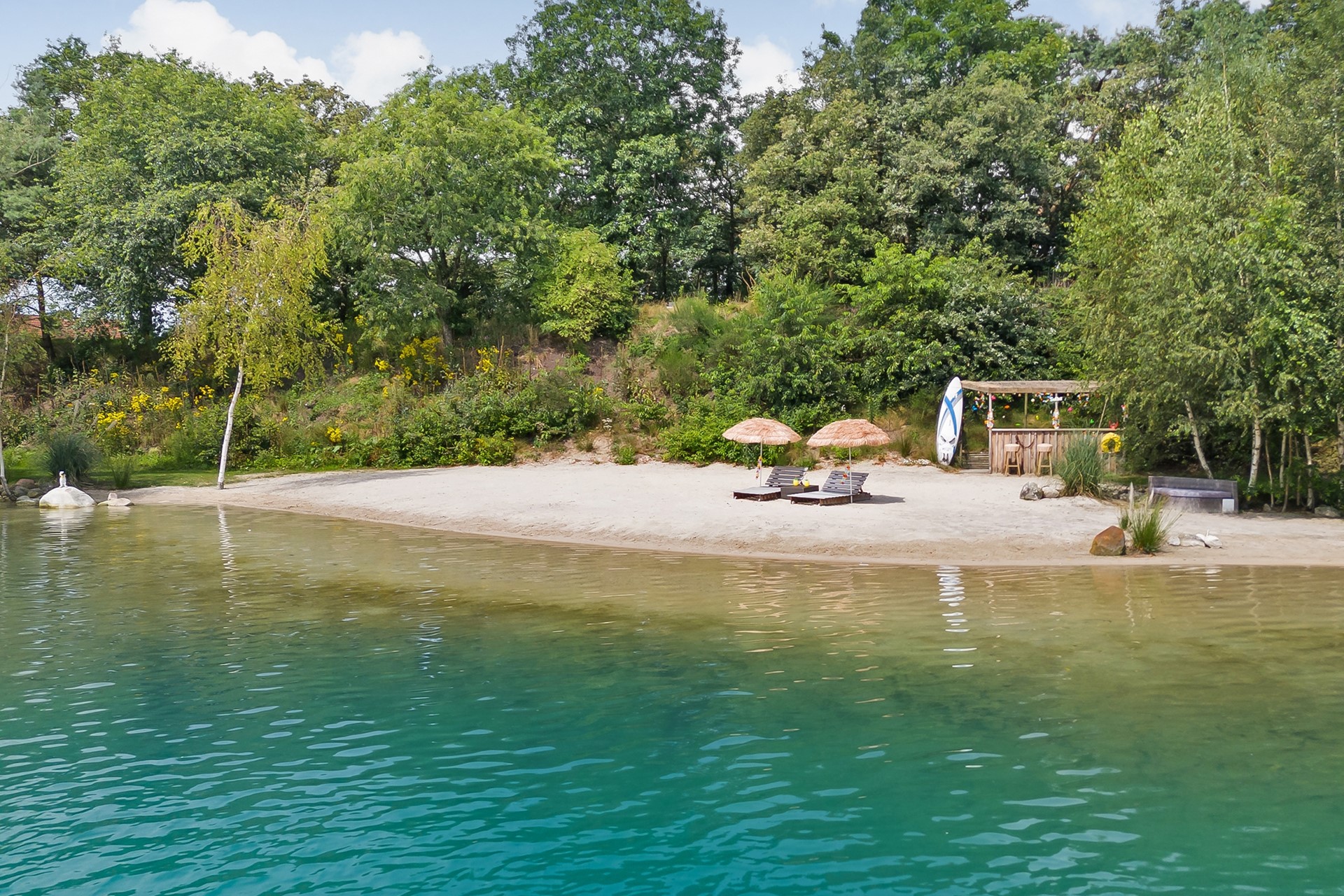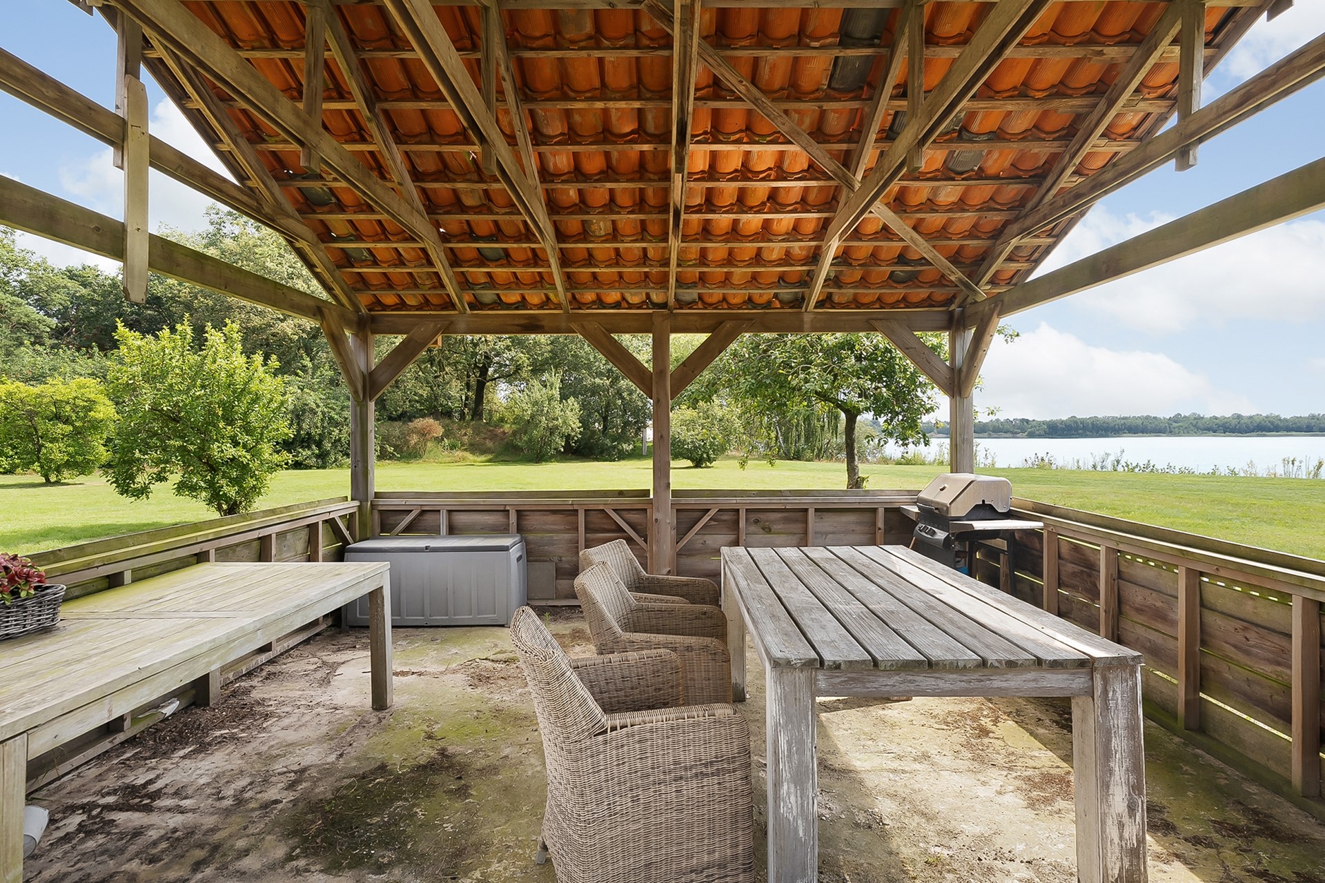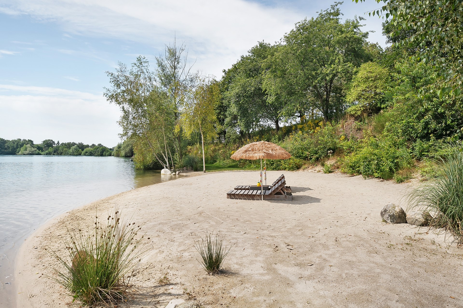 * Eigen water (deel van de achterliggende waterplas) over de volle breedte van het perceel, met