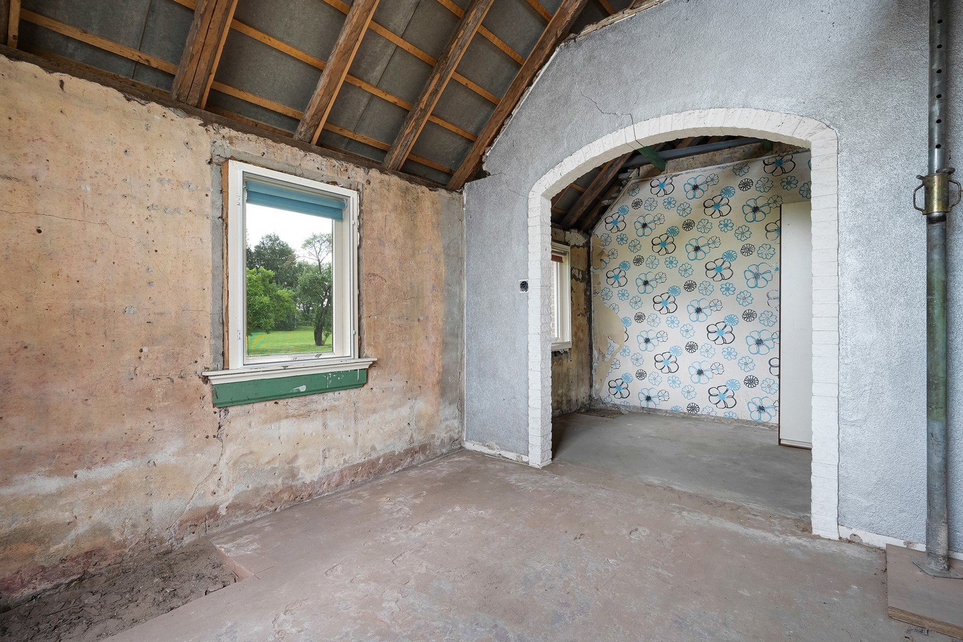 Delen van de woning zijn reeds voorbereid voor renovatie.