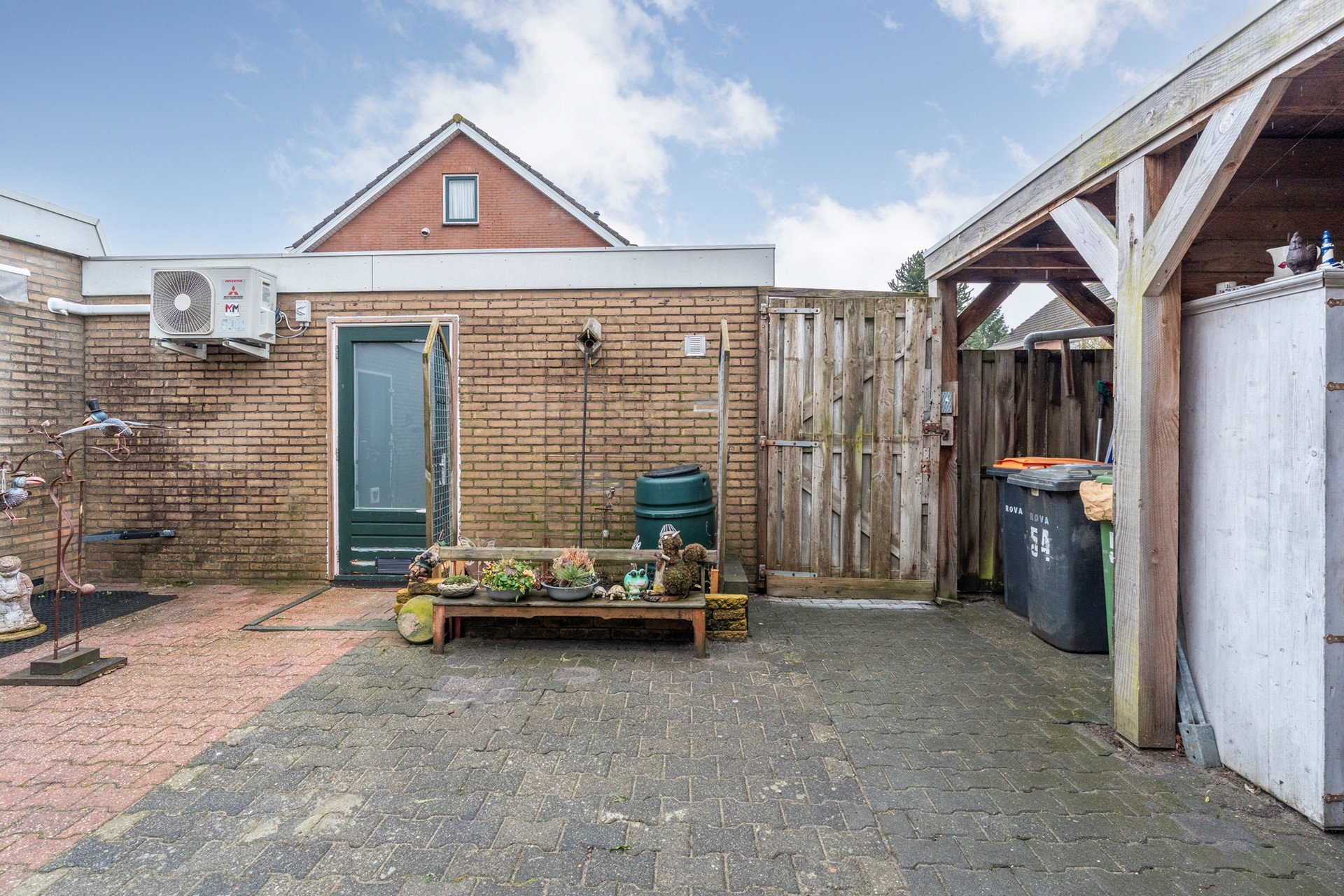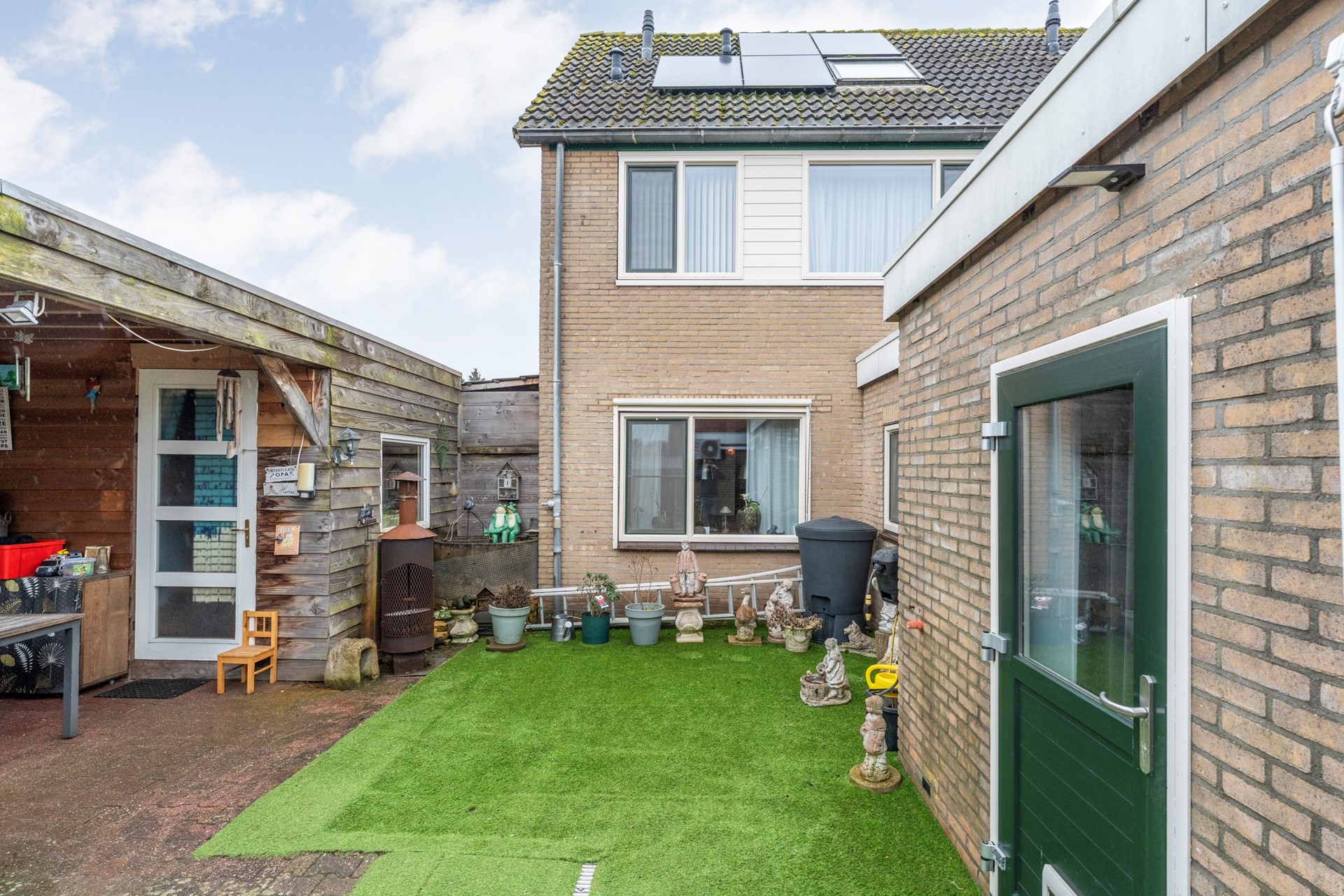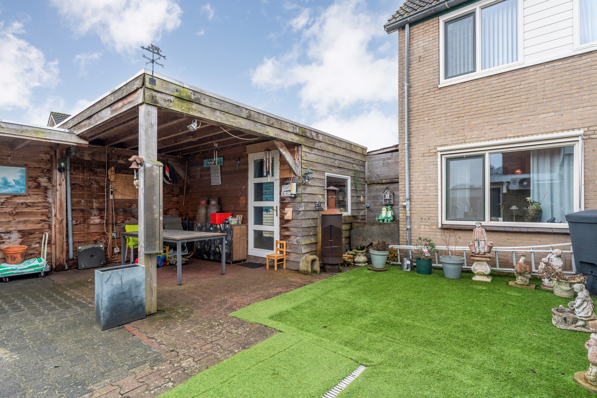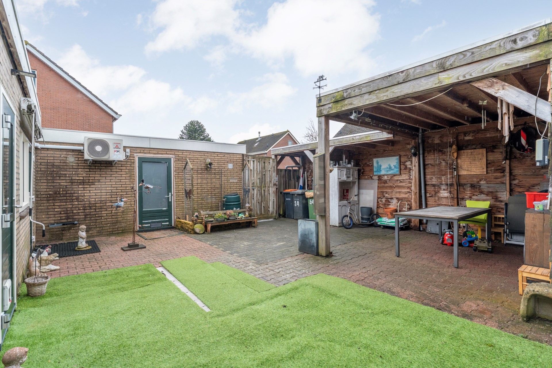 Een lekker ruime tuin rondom zorgt voor altijd een plekje in de zon of schaduw. Of je nu houdt van tuinieren, lekker buiten eten of gewoon genieten van rust, het kan hier allemaal. Achter het huis vind je een handige schuur en een royale overkapping – ideaal voor de fietsen, hobbyprojecten of gewoon als extra bergruimte. Bovendien kun je meerdere auto’s parkeren op eigen terrein én is er nog een aangebouwde garage/berging voor al je spullen.