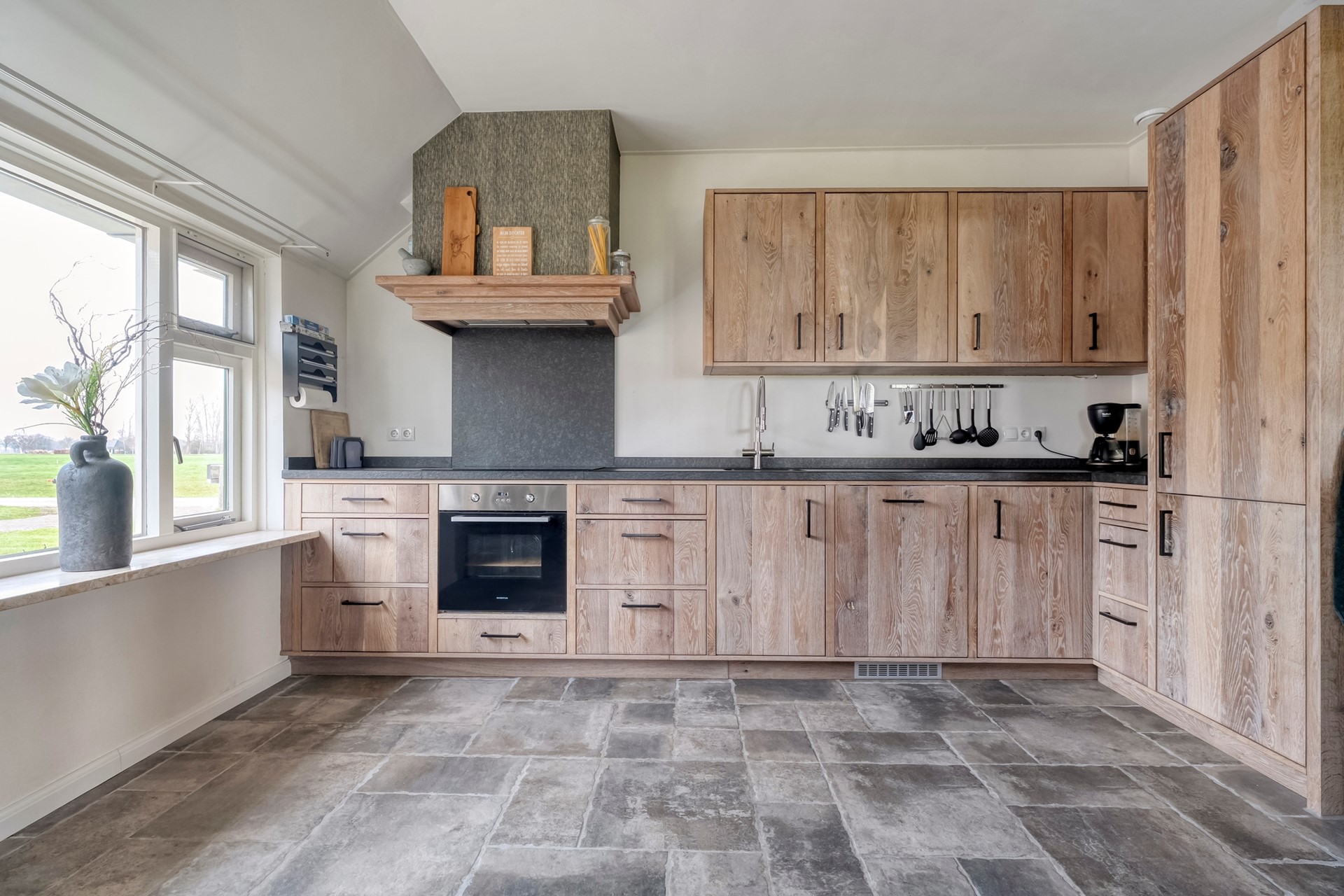 Aan de andere kant van het huis grenzend aan de woonkamer vind je de landelijke woon- en leefkeuken. Compleet ingericht natuurlijk: inductiekookplaat, afzuigkap, ruime koel-vriescombinatie, vaatwasser, oven, én voor de echte koffieliefhebber een ‘quooker’ met flexkraan. Koken is hier echt samen beleven.