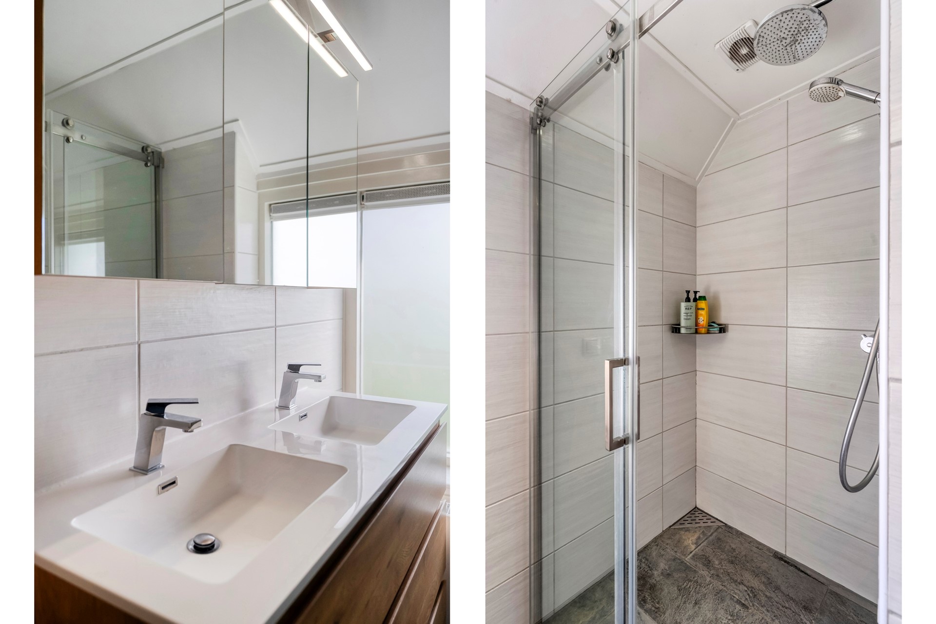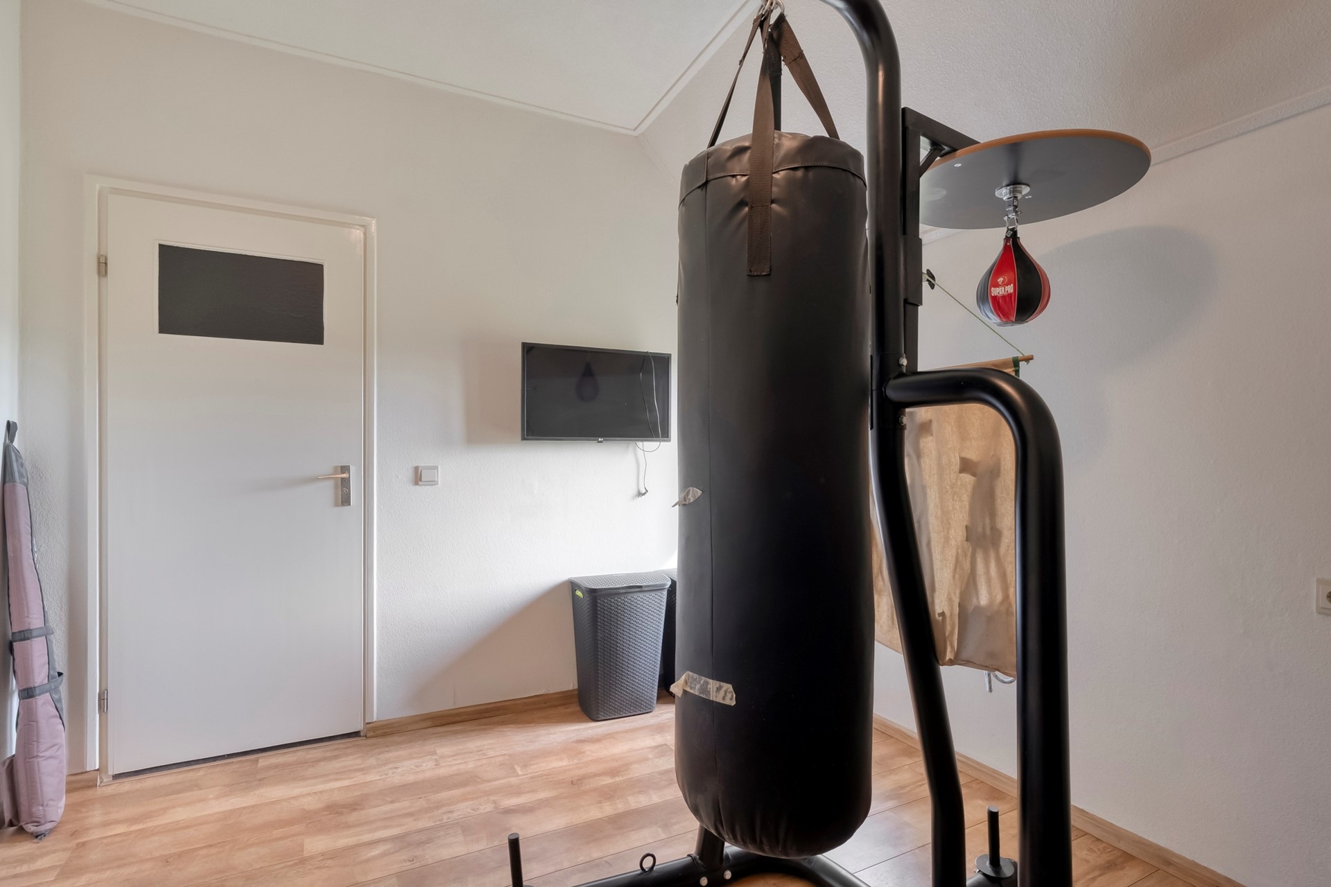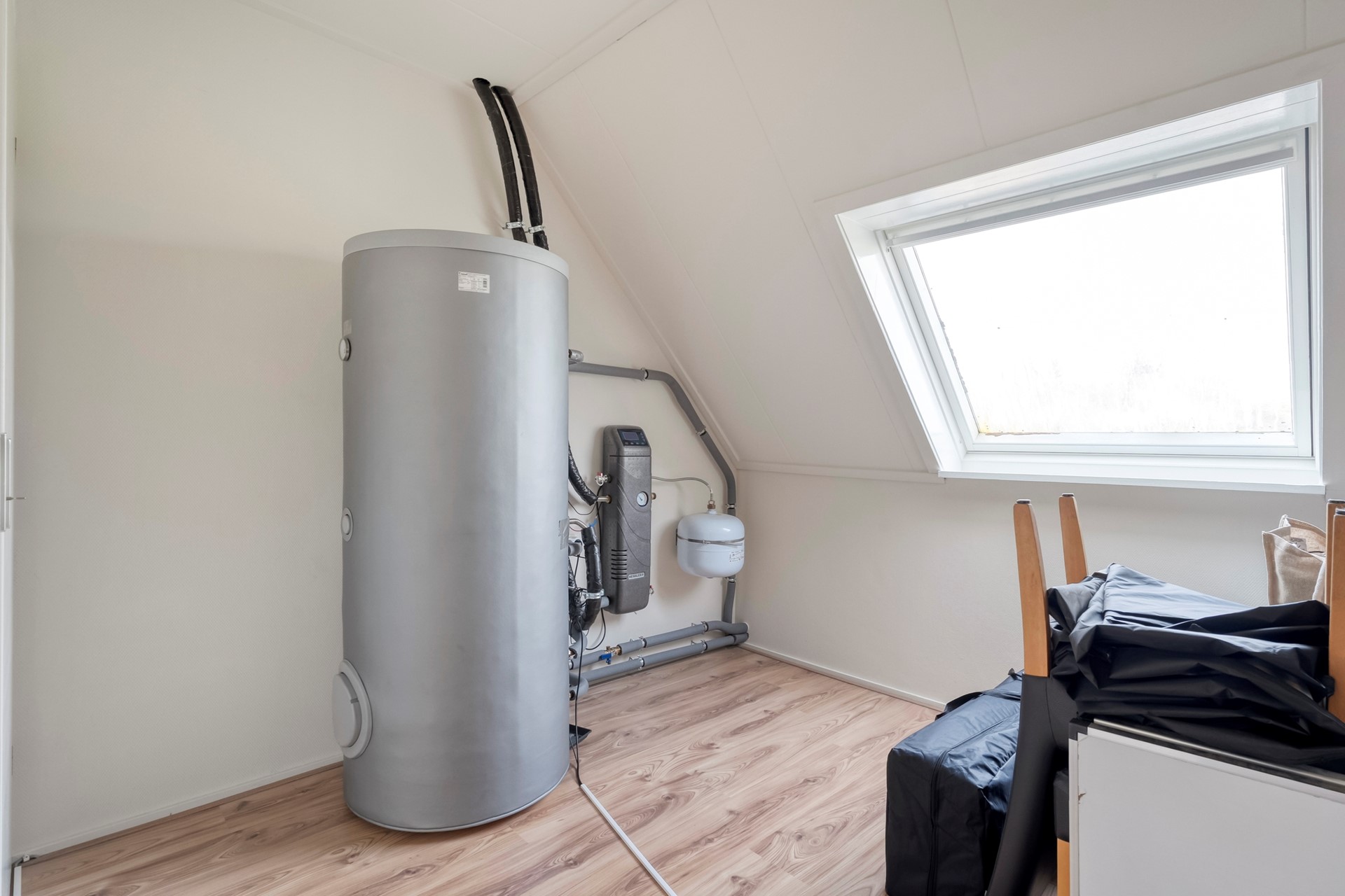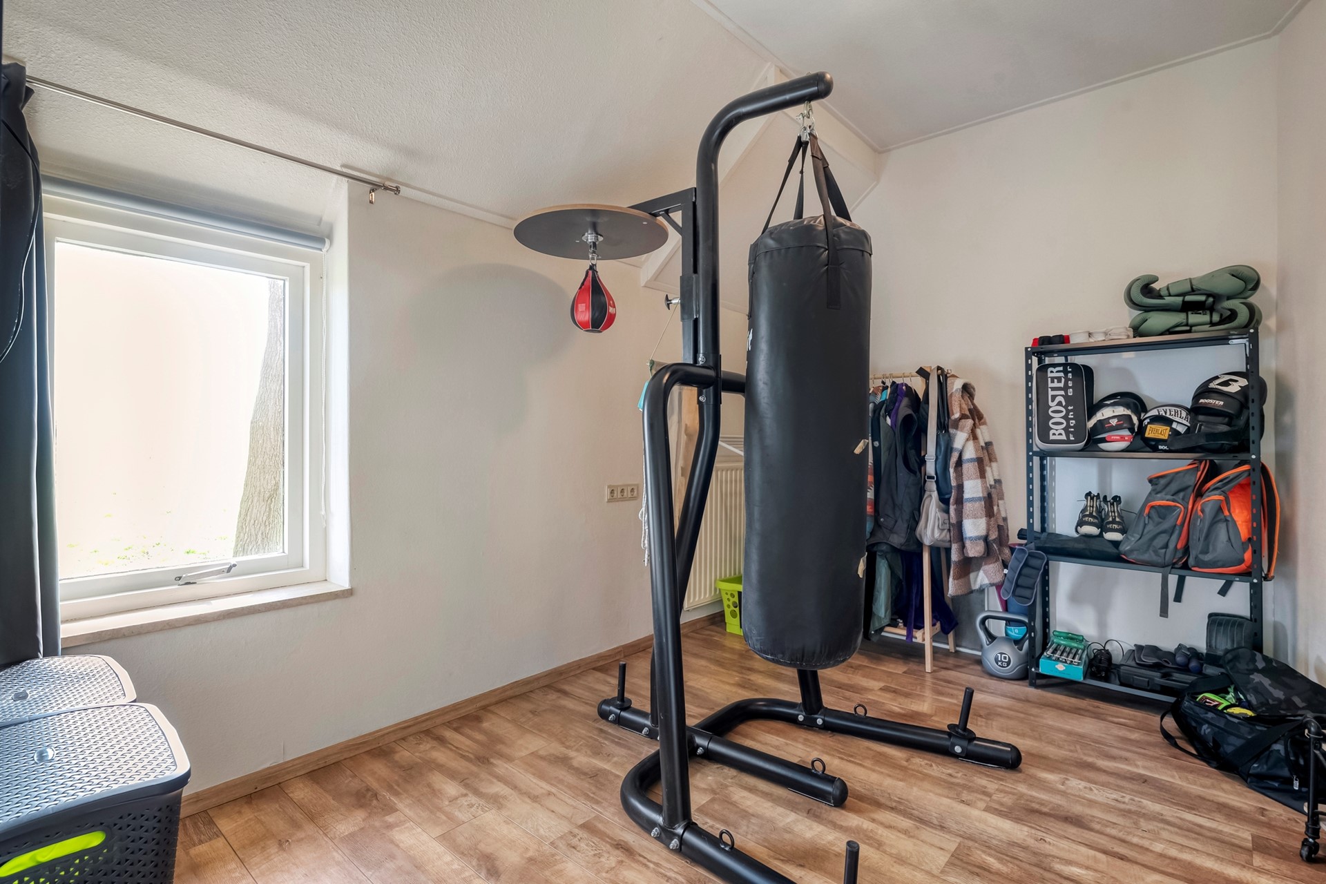 Aan functionaliteit geen gebrek. De bijkeuken heeft aansluitingen voor de wasmachine, plek voor een wasdroger én extra bergruimte. Nog een extra kamer beneden – te gebruiken als kleedkamer, tweede slaapkamer of bijvoorbeeld werkplek aan huis – maakt het plaatje compleet. De badkamer op de begane grond is modern en fris, voorzien van een ruime inloopdouche, een dubbele wastafelmeubel, wandmeubel, én een tweede toilet.